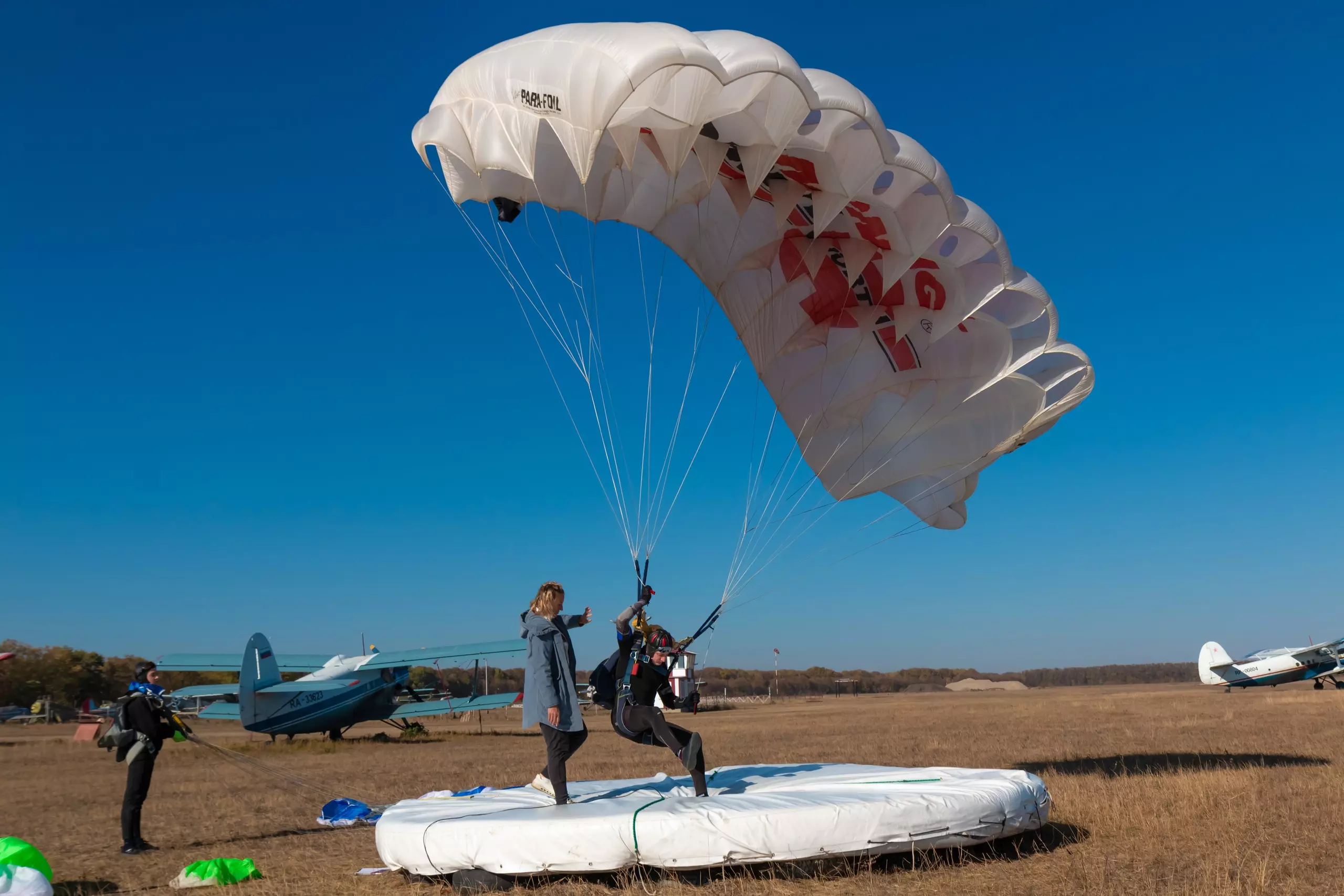 Второе направление – подготовка спортсменов-парашютистов. Это — 40 часов теории, углубленное знание материальной части, укладка парашюта, история развития этого вида спорта и наземная подготовка. Потом необходимо сделать от одного до десяти прыжков.