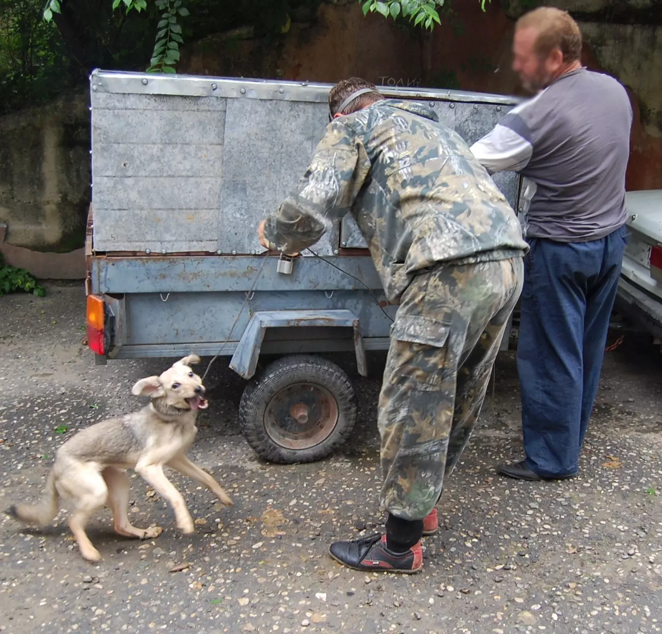 которой прежде относительно нормально перевозились 30-4о животных, на сей раз оказалась слишком тесной. Так что без жертв не обошлось: в конце пути, когда все собаки были выпущены в лес, на дне будки осталось неподвижно лежать маленькое серо-палевое тельце. Наш объектив запечатлел взгляд этого щенка-несмышленыша, которому в его короткой жизни довелось увидеть небо лишь на одно мгновение — между стеной пятиэтажки и будкой, где метались десятки обезумевших от страха четвероногих сородичей. Из остальных наиболее сильные разбежались кто куда, самые ослабленные сбились в кучку под кустами. Им, абсолютно не приспособленным к самостоятельной жизни, предстоит самим адаптироваться к новым условиям, но что бы ни произошло с ними теперь, вряд ли это окажется хуже кошмара, из которого они наконец-то вырвались. Да и нет у них иного выхода: откуда возьмутся средства на нормальный питомник для животных в коррумпированном Кисловодске, где бюджетные миллионы умудряются то «терять», как это было с озером, то бездарно выбрасывать, как сделали с напоминающим трубопровод надземным переходом при въезде, с его неработающими лифтами.