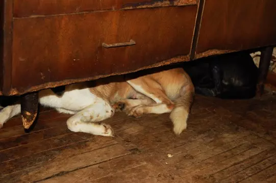 Большинство из этих собак ни разу в жизни не видели ни людей, за исключением хозяйки, ни улицы, ни природы. Специалисту, взявшему на себя невероятный труд по их отлову и выводу с 4 этажа дома, пришлось работать в респираторе из-за невыносимого смрада, которым за несколько лет в квартире пропитались полы, стены и обломки мебели и от которого вряд ли удастся когда-нибудь избавиться. По его словам, в квартире оказался частично обглоданный труп собаки, а как только были распахнуты закрытые наглухо окна, из них стремглав выбросились несколько кошек, каким-то чудом выживших в этом собачьем аду. Собак же, маленьких и больших, щенков и озлобленных взрослых, выводили по одной. Их оказалось… пятьдесят семь(!) , то есть почти вдвое больше предполагаемого. И будка, в