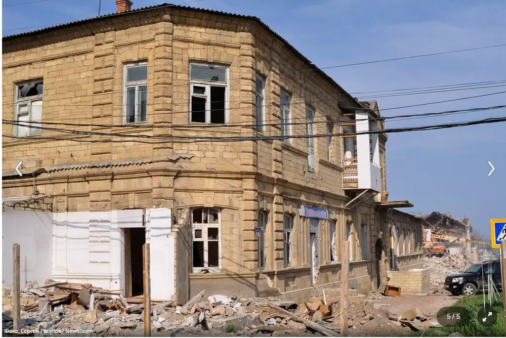 Ибрагимов говорит много и эмоционально. Извиняется и объясняет: накипело. — Полгорода — это наши музейные зоны. Как я могу одобрять или не одобрять переселение, когда меня на совещания по этим вопросам чиновники давно не зовут? Потому что я говорю, что так делать нельзя! Строят кто хочет и как попало. Цвет оконных рам, крыш — нет единого стиля, нет контроля! Он говорит, что музей может только выносить предупреждения застройщикам и подрядчикам, а подает дела в суд музейное руководство — Агентство по охране культурного наследия Дагестана. Его руководитель Заур Кахриманов объяснил «Это Кавказ», что, невзирая на год постройки, здание может и не находиться под охраной государства как объект, представляющий собой какую-либо ценность. — По некоторым домам к нам поступили жалобы, наша комиссия выезжала на место. Материалы проверки уже направлены в прокуратуру для реагирования. Если эти дома не являются объектами культурного наследия, то уголовное дело не может быть возбуждено. Могут быть приняты только административные меры, штрафы, потому что процедура принятия решения о сносе домов прошла без согласования с нами, — сказал Кахриманов, отметив, что не располагает полным перечнем домов, идущих под снос. Между тем в число снесенных все-таки попал и объект культурного наследия — дом 38 на улице Ленина. Когда-то он принадлежал аптекарю Яну Шварцу-Брускину. Табличку, на которой была указана эта информация, а также и то, что здание является памятником архитектуры и объектом культурного наследия Дагестана, установили на фасаде дома всего год назад. Здание отличалось от других необычной архитектурой: пятью каменными башенками на крыше, на них были выбиты цифры, складывающиеся в надпись «1911 г.» — год постройки. Фото: Ирина Михайлова Охраняемый дом по адресу Ленина, 38 тоже попал под ковш экскаватора — По факту сноса этого здания материалы переданы в суд. Мы до последнего надеялись, что жильцов расселят, а дом не тронут. Фасад можно было сохранить, переделав все, что внутри. Это городские власти должны были бы делать из бюджета города, потому что это была бы уже муниципальная собственность. Можно было привлечь инвестора или мецената, потратить 3−5 миллионов рублей и сохранить здание, — рассуждает директор музея Али Ибрагимов. И. о. главного архитектора Дербента Абуферз Ахмедханов говорит, что дом снесли незаконно: — Мы разрешение на снос не выдавали. Я даже предписание в Агентство по охране объектов культурного наследия республики отправил, они должны принимать меры. Дом был снесен застройщиком самовольно. Ему мы тоже направили предписание. Вопрос о том, как под снос, а не реконструкцию попал дом, являвшийся объектом культурного наследия, «Это Кавказ» в числе прочих адресовал Министерству строительства, архитектуры и ЖКХ республики — именно это ведомство курирует программу переселения граждан из ветхого и аварийного жилья. Однако за время подготовки материала ответа на этот и многие другие вопросы от министерства получить не удалось. «Город теряет свой дух старины» Снос старых домов на улицах Ленина, Пугина и Таги-Заде многие восприняли болезненно, посчитав, что древний Дербент утратил еще одну часть своего обаяния. Сожаления о том, что из Дербента уходит дух старины, звучат не первый год. В 2015 году древний город отпраздновал свое 2000-летие,