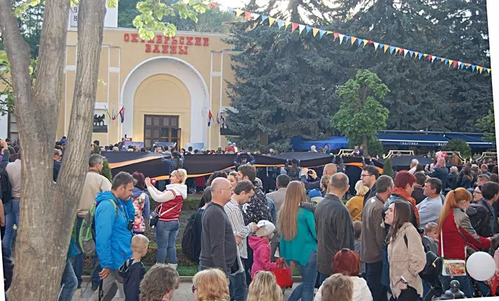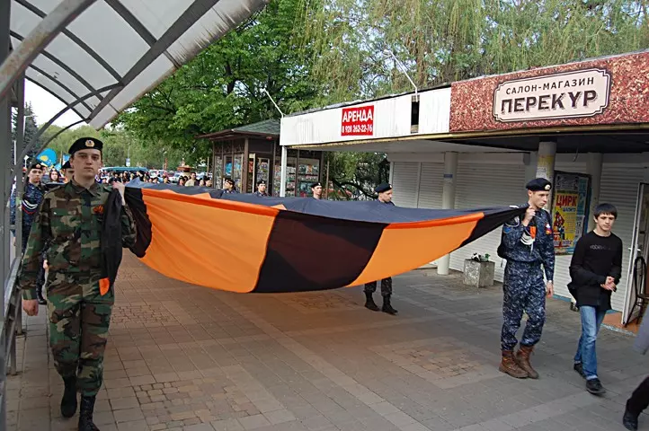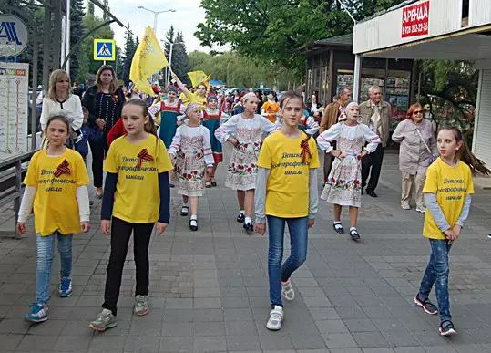 Вечером по проспекту Победы к Курортному бульвару, месту песенного флэш-моба «На волне Победы», прошло яркое, многоголосое костюмированное молодежное шествие с огромной Георгиевской лентой, флагами, песнями и патриотическими лозунгами. Праздничный концерт с участием творческих коллективов продолжался на Курортном бульваре вплоть до вечернего фейерверка, с особой красотой и яркостью рассыпавшегося в вечернем небе.