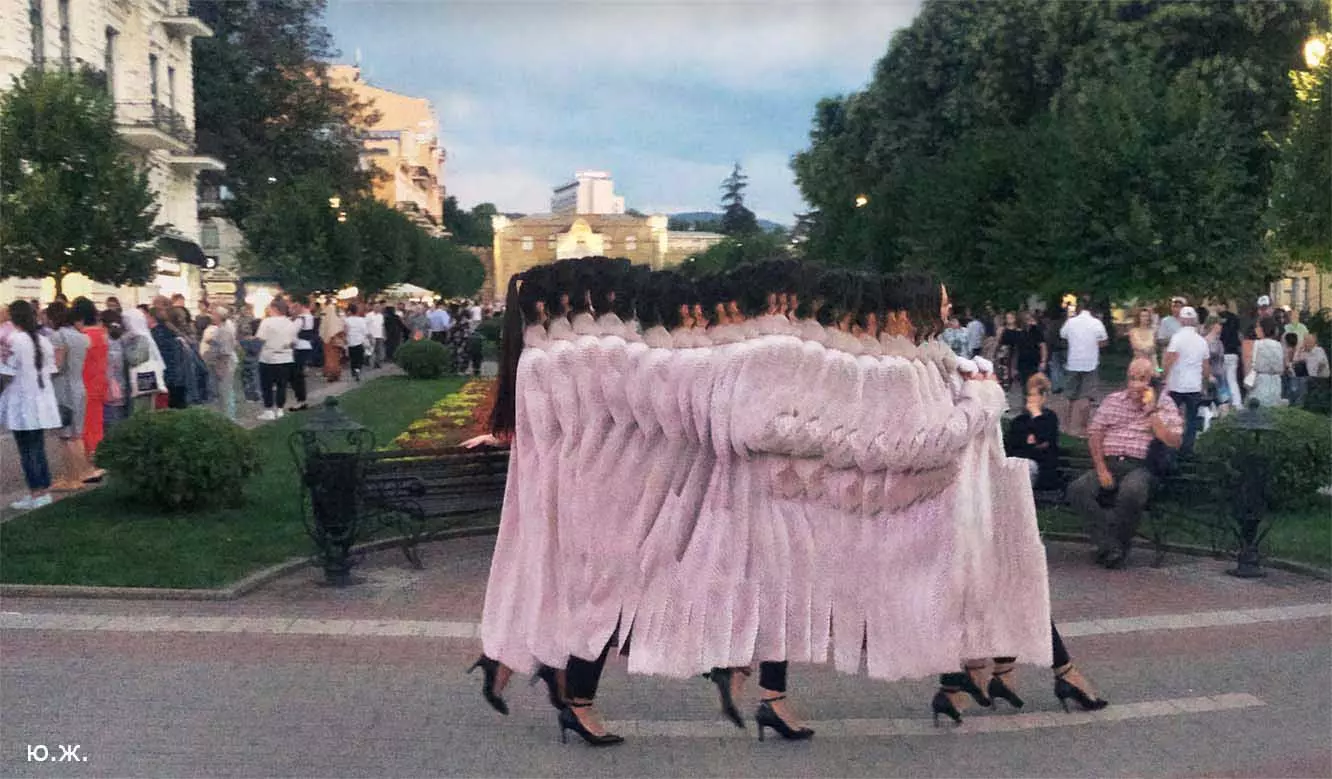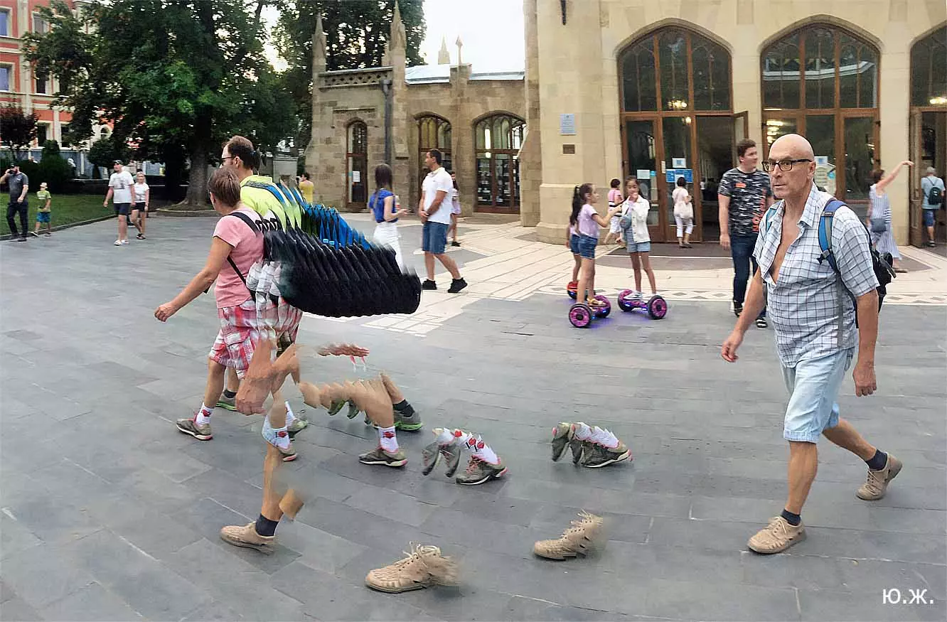 Снимая показ мод на Курортном бульваре с длительной экспозицией или другие движущиеся предметы и объекты: детские авто у Нарзанной галереи, велосипедисты, детские коляски и просто идущие люди, — получаешь эффект перехода движущейся материи в энергию. Здесь представлена целая серия таких фото — Курортный бульвар сюрреалистический. В НК был опубликован целый альбом таких снимков..