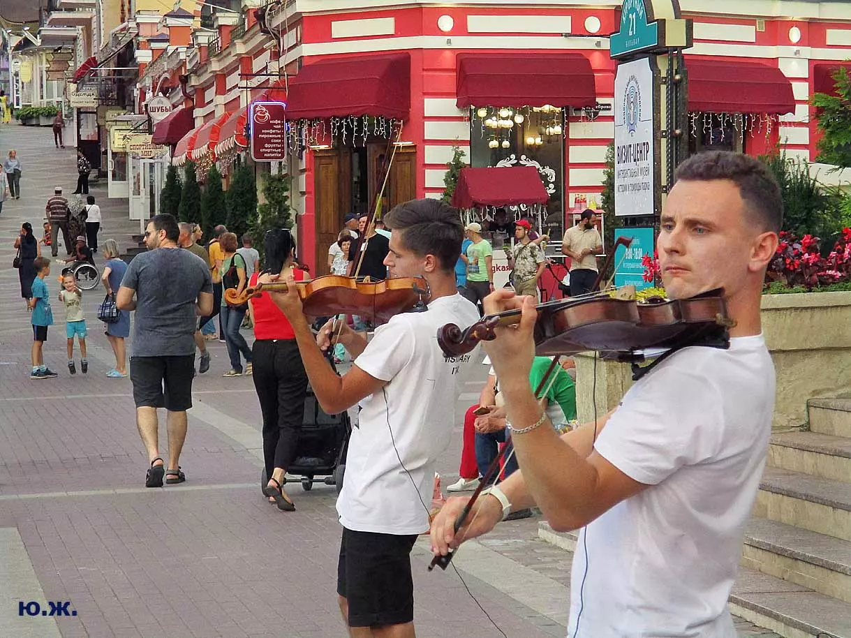 Лето заканчивается, это вторая часть темы «Спектакль длиною три месяца. Курортный бульвар 2021». Во второй половине лета мы не увидели ни шпагоглотателей, ни извергателей огня изо рта, ни фокусников, ни лежащих на гвоздях по пояс обнаженных, в которых сверху падали ножи. Поменялась и поющая, играющая на самых разных инструментах публика, хотя многое осталось из прежнего репертуара.