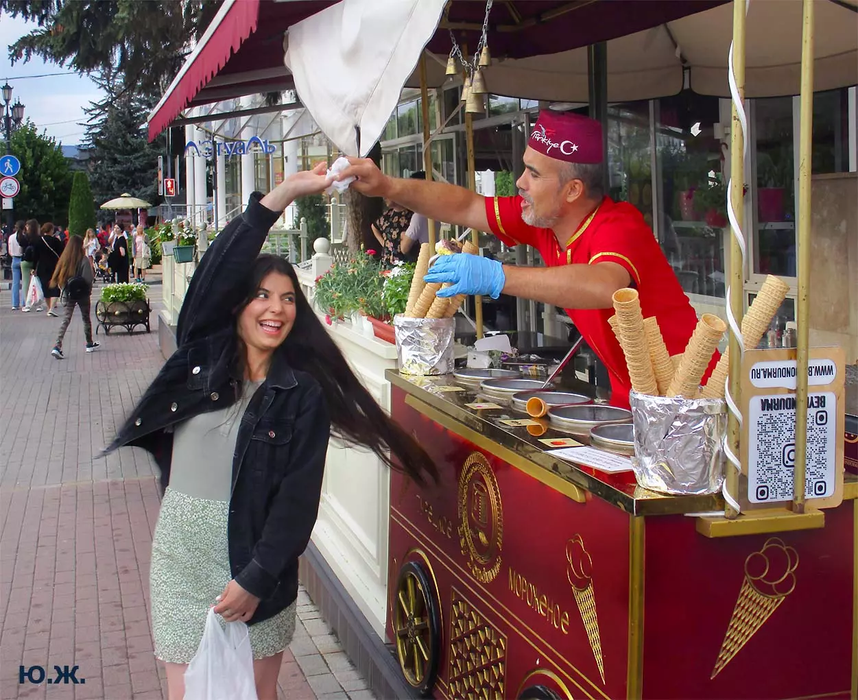На бульваре уже становится достопримечательностью капсуловидный трейлер, где готовится шаурма, там всегда оживленно, а недалеко от него в ресторане «Босфор» со стороны тротуара напротив Нарзанных ванн,турецкий продавец в феске, виртуозно готовит в своем аппарате и преподносит всем желающим, с особым ритуалом и цремонией вкуснейшее мороженое…
