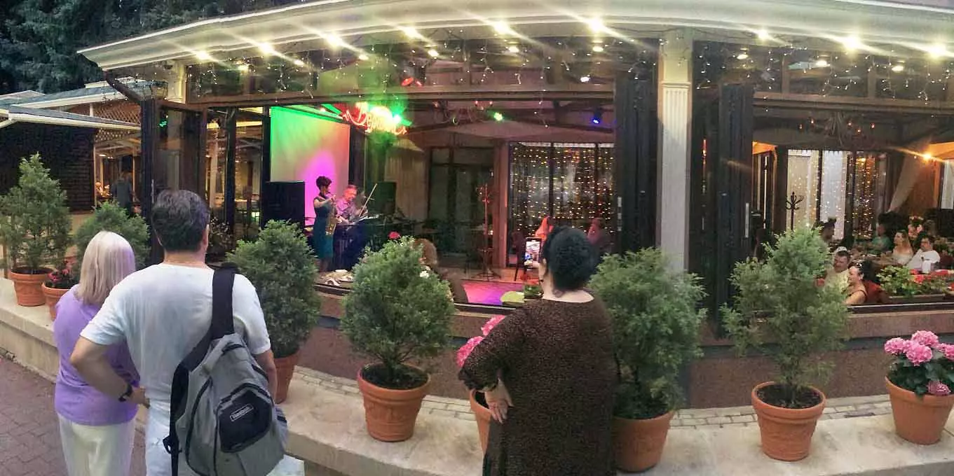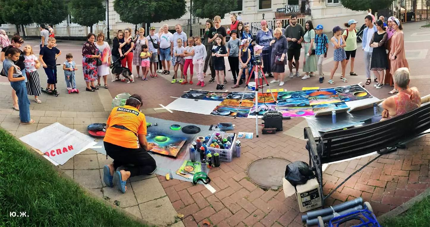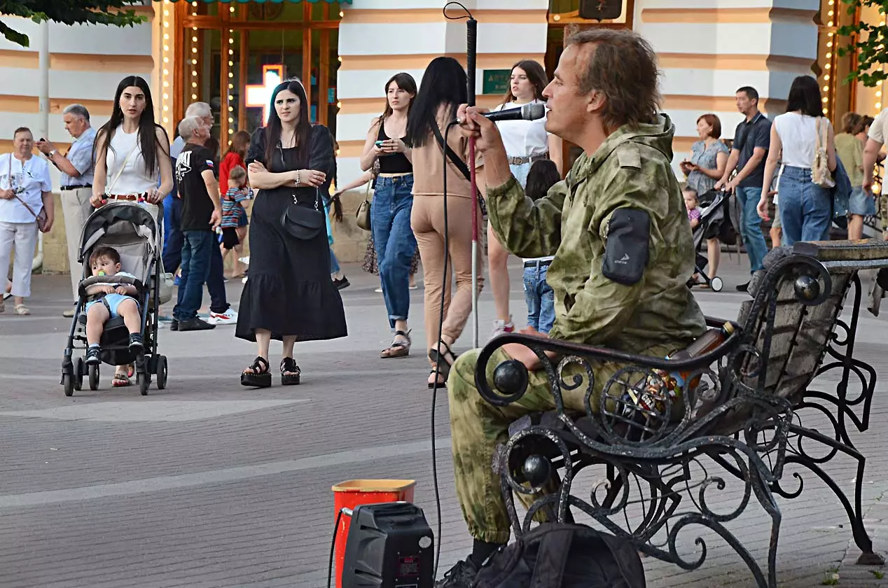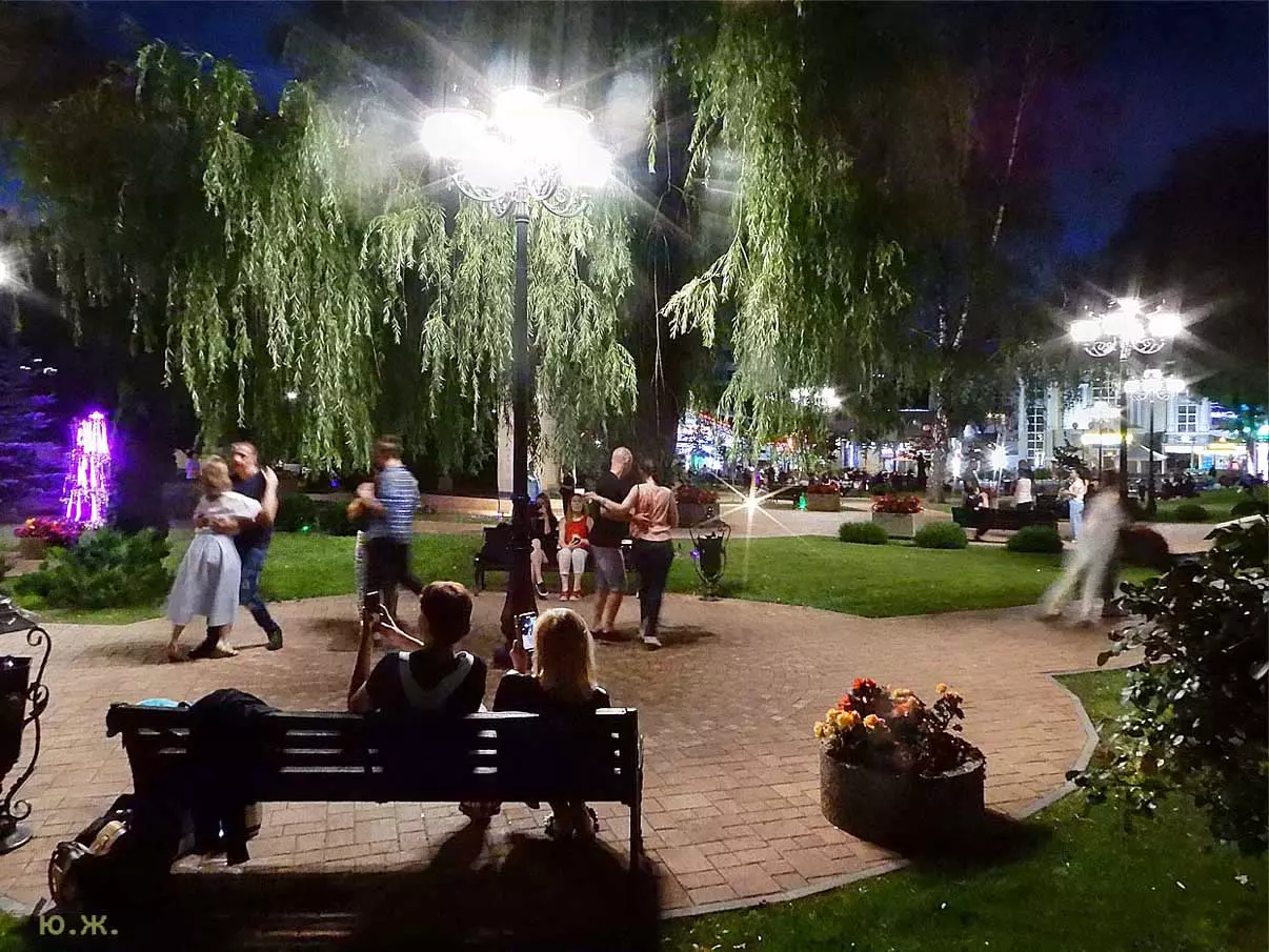 К нам приезжают, прилетают в разгар курортного сезона всегда, а в этот год особенно, разные творческие люди: шпагоглотатели, фокусники, люди лежащие на досках с длинными гвоздями, извергающие изо рта огонь, скрипачи, аккордеонисты, ребята с прекрасными, поставленными голосами, исполняющие и неаполитанские песни и «первым делом, первым делом самолеты…»,- я не спец, но по моему, ребята делают это здорово. Здесь много тех, кто выбрал пение, танцы, саксофон, встречал и губную гармонь… Думаю, добрая половина из них — наши, кисловодчане, очень много среди них совсем юных. Мне кажется очень позитивным, что ребята в наше трудное время ищут себя, пробуют в самом разном деле, зарабатывают какие то деньги, познают как они достаются. Это существует во всем мире, даже президенты и другие, сделавшие себя сами, известные люди в своих мемуарах описывают как в детстве и юношестве зарабатывали себе, например, продавая газеты, исполняя, если бог дал им этот талант, песни, и многие другие увлечения. У нас, в основном, никакой навязчивости не встречается. Сейчас, в сезон, когда в центре так много отдыхающих и в кафе, и в торговле сувенирами, и других подобных местах, везде нужна помощь, нужны молодые люди, которые могут привлекаться к такому бизнесу, только нужно быть справедливым к ребятам, чтобы такой опыт оставил у них добрый след. Давайте надеяться, что в продолжении лета будет много и других ярких изюминок. Кстати, в сквере в недалеке от памятника медицинской сестры, танцуют на пленэре вечером, вальс (см. на фото).