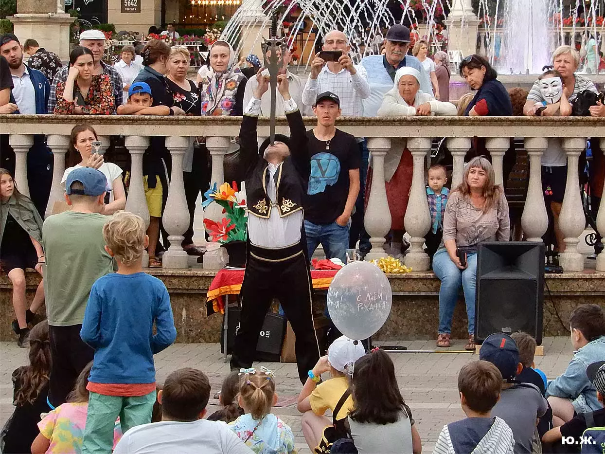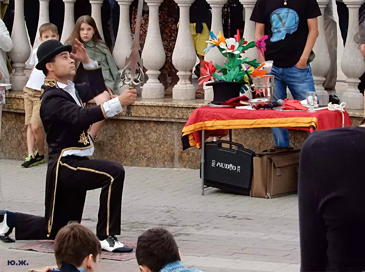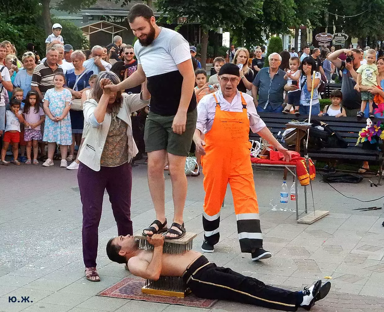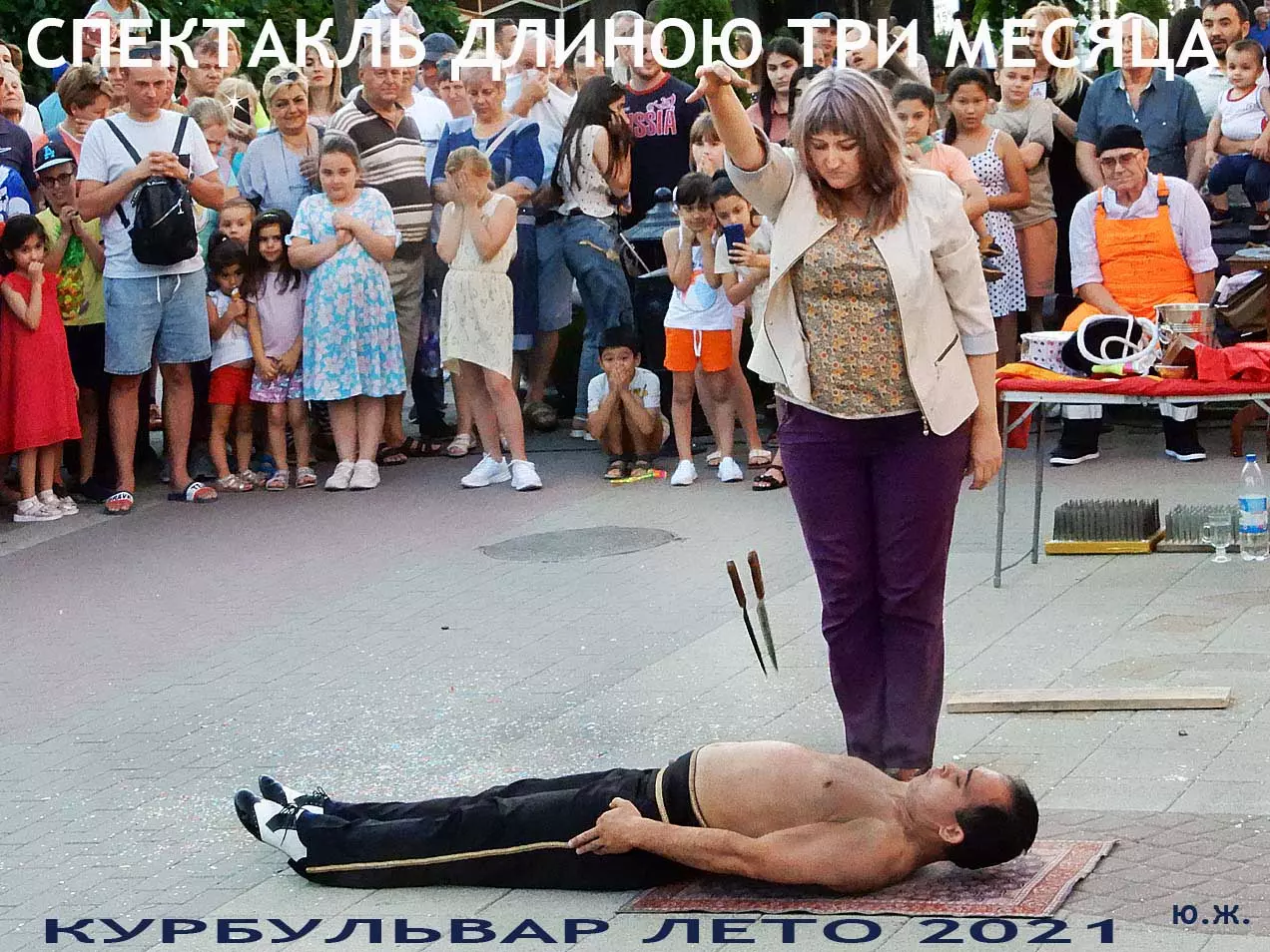 Уже идет к концу второй месяц спектакля, этого «высокого сезона», скоро август, надеюсь и продолжение будет таким же интересным и захватывающим. На разных площадках Курортного бульвара, от небольших до самых маленьких, причем, часто и произвольно изменяющихся даже в течении одного дня их временными обладателями.