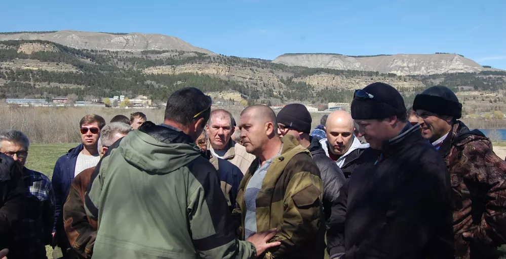 Подвохи, прибывшие на нескольких машинах, под эффектным флагом общества «ПроСОМ», зарегистрированного в 2016 году, настаивают на том, чтобы таблички, которые, они убеждены, установлены незаконно и не соответствуют нормативным требованиям, были ликвидированы. «Наше Общество спортивных охотников охватывает много городов, начиная от Хабаровска: Ростов, Крым, КЧР, КБР, Краснодар, города КМВ и многие другие, — рассказал нам руководитель Общества на КМВ ессентучанин Дмитрий Киселев. — Спортивная охота у нас разрешена законом, мы все имеем сертификаты, руководствуемся законодательством РФ — специальными правилами подводной охоты на озерах и других водоемах, нормами вылова рыбы. В каком бы месте мы ни охотились, мы никогда ничего не нарушаем. В данный момент конфликта нет, нам просто непонятна табличка на озере о запрете подводной охоты. Поэтому мы приехали разобраться: что мы нарушили? Кто, на каком уровне вынес запрет? Отдана ли эта территория кому-то в аренду? На каком основании ущемляются наши права?»