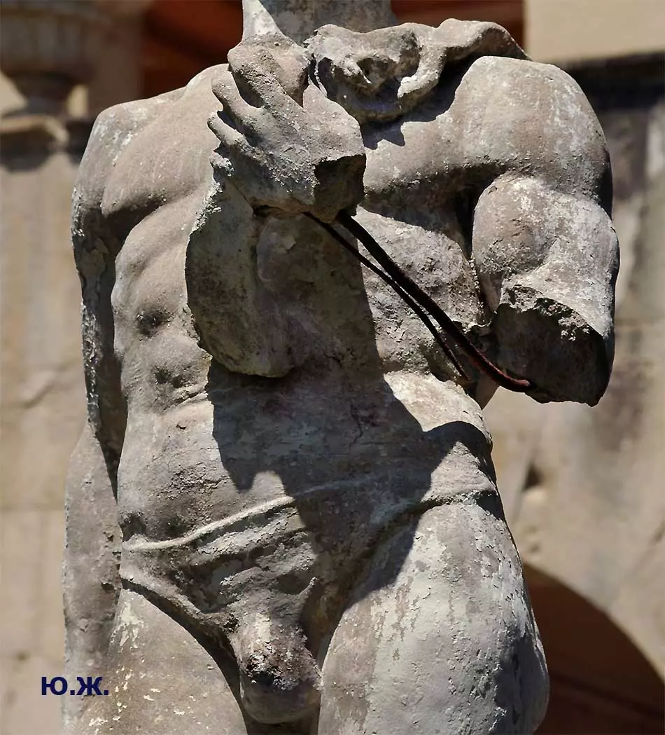 Вот об одной такой скульптуре мы и поговорим. Старинная архитектура — это не только здания, и об этом я писал еще в июле 2017 года в НК в материале об истории старинной стены, которую в те дни как раз и замуровывали. Старинная архитектура — это очень и очень многое, и утрата навсегда одного из компонентов невосполнима. Думаю, без показанных на этих фотографиях скульптур, которых в реальной жизни больше не существует, новые экскурсии по Леонидовской лестнице обеднели. С этим трудно смириться.