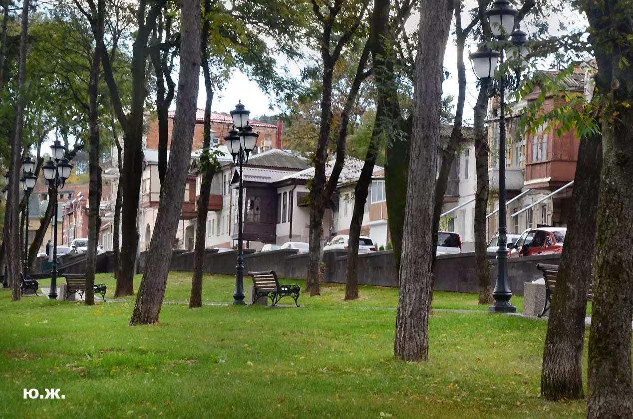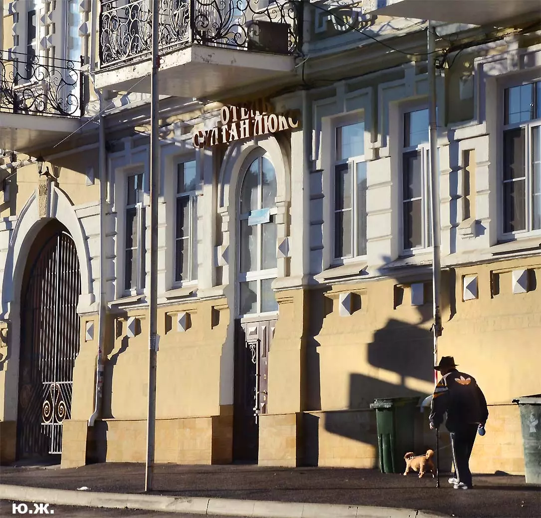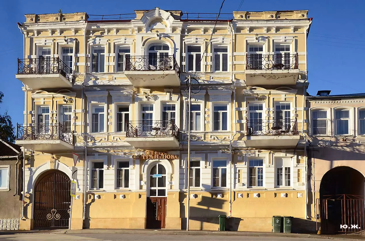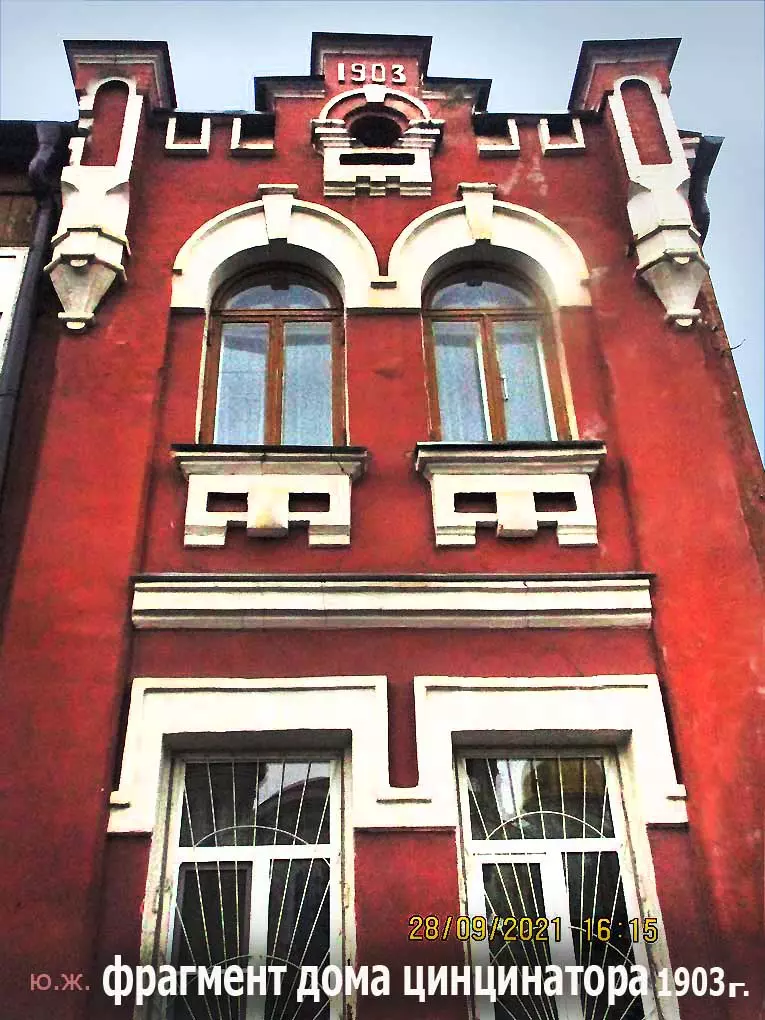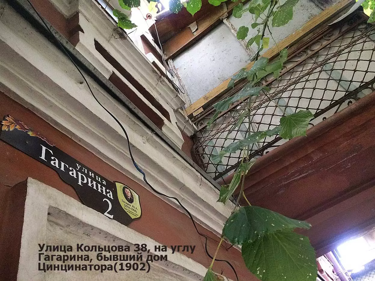 С другой стороны улицы Кольцова большой красный дом под №38, бывший дом Цинцинатора. Цинцинатор Иван Семенович был в 1887-1888 годах смотрителем Кисловодского курорта. В 1903 году его сын Дмитрий Иванович на месте усадьбы отца построил большой двухэтажный темно-красного цвета особняк в стиле эклектики. Рядом с ним справа красивый высокий трехэтажный особняк, где долгое время была школа, сейчас, после реставрации, там отель.
