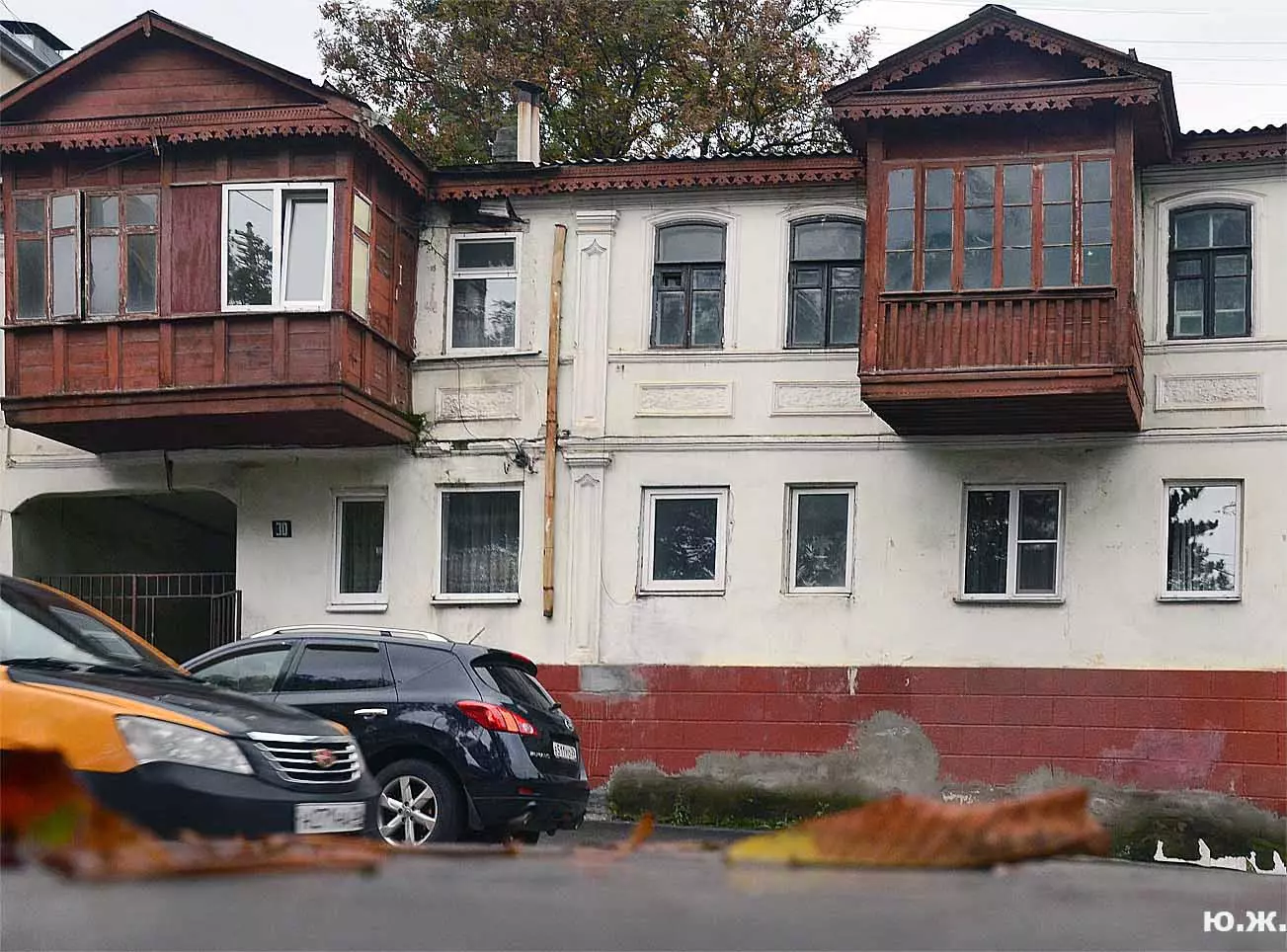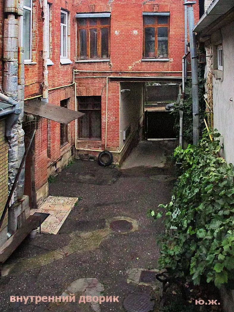 Здесь же моя задача, показать эту интересную в разных планах улицу, увиденную моими глазами, показать во все времена года, при интересных состояниях природы, не спеша, сначала думать, потом нажимать на затвор… Помимо особняков, очень интересно было побродить по их внутренним дворикам. Хотя после многих десятков лет комунального проживания это делать очень не просто, но интересно — осталась планировка двориков, остались фрагменты , оригинальные детали. Здесь можно показать и контраст — деревянный подлинный резной потемневший карниз и спутниковая антена, или оставшиеся цветные стеклышки витражей …