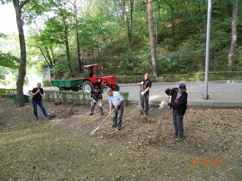 Коллектив санатория разделился на несколько групп. Большая часть работников убирала склоны, расположенные на территории здравницы. Остальные были задействованы в уборке прилегающей к санаторию территории.