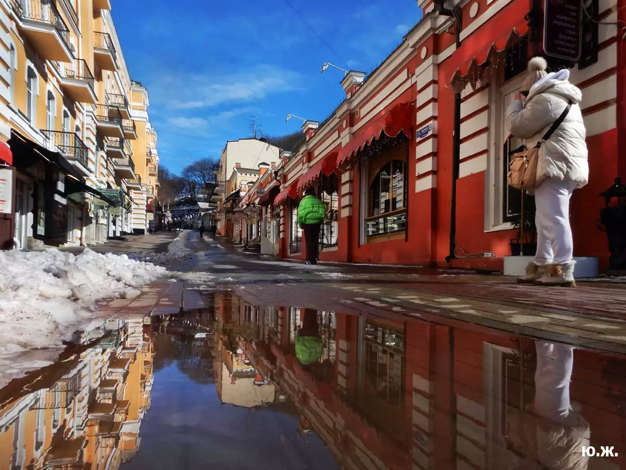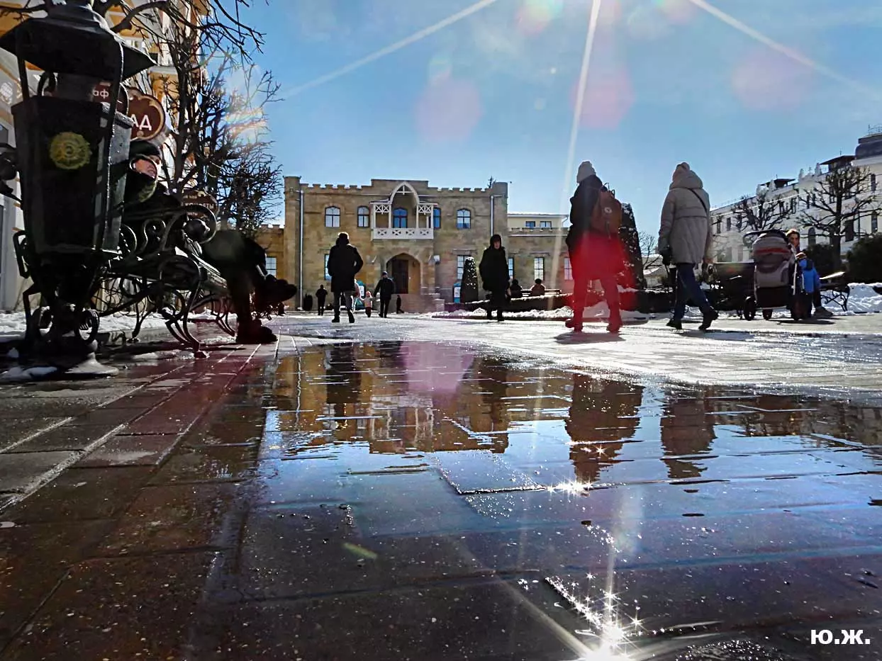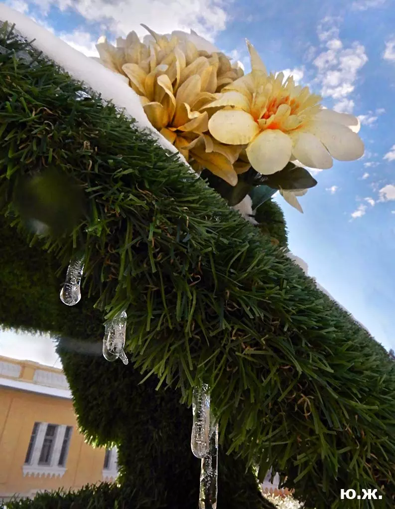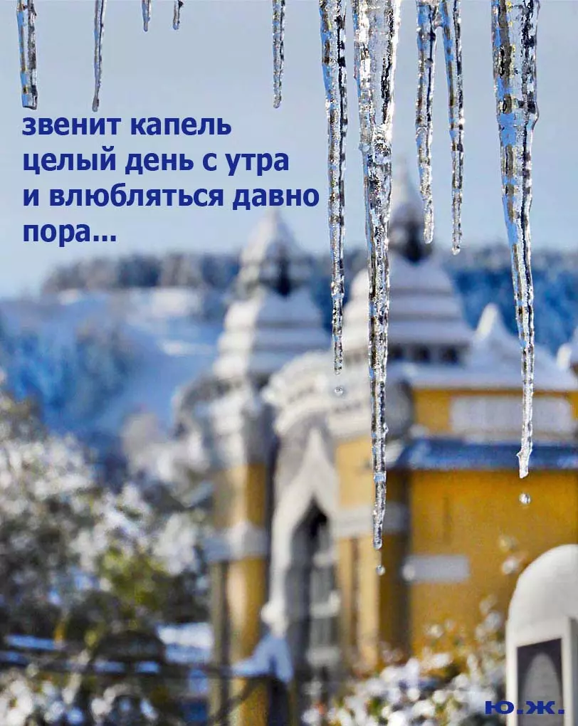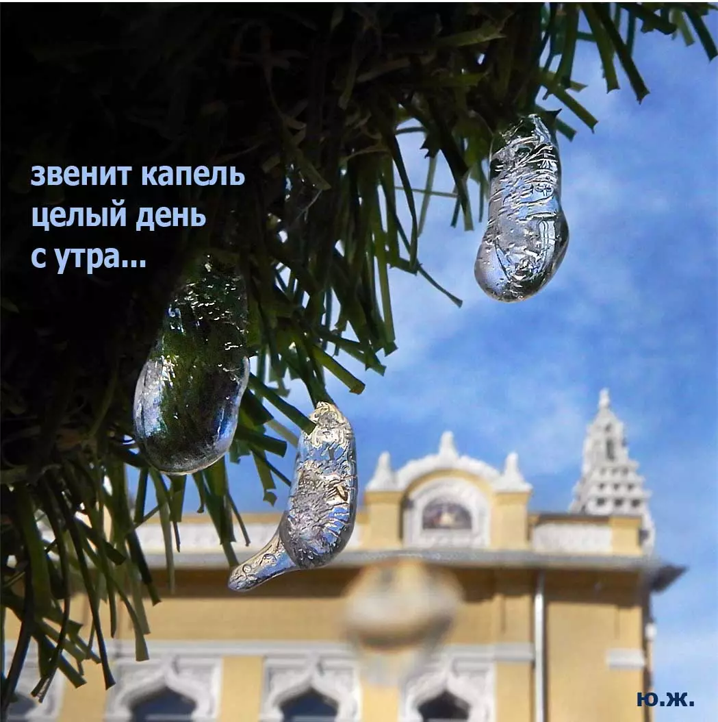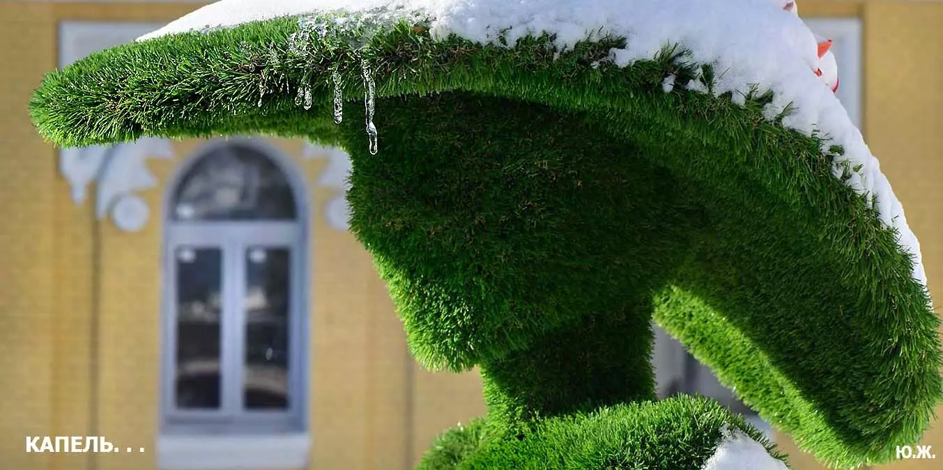 «Звенит капель целый день с утра, и влюбляться давно пора. В том, что город такой теперь, виноваты весна и капель…». Наверняка, кто-то вспомнил эту песню шестидесятых годов прошлого века в исполнении Жана Татляна. Для меня уход зимы связан в последние годы с зелеными девушками в хвойных шляпах, что поселились во двориках у Нарзанных ванн. После уже теплого солнца по сосулькам, свисающим с их роскошным шляпок, стекают хрустальные капли, в которых отражаются и солнце, и все вокруг…
