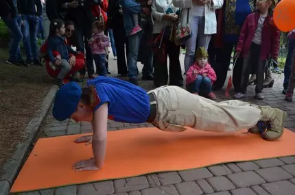 На выделенной для этой цели площадке были разложены 10 специальных ковриков, кориматов, к которым подходили все желающие принять участие в акции. Возраст участников акции варьировался от 3 до 70 лет. Первыми свою подготовку продемонстрировали юные