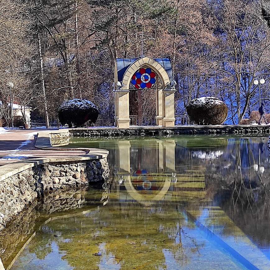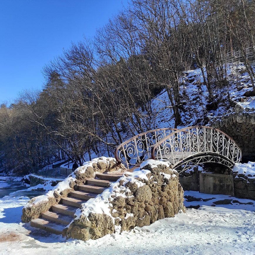 Голубые тени, брошенные на ажурные мосты, светлые от снега дорожки, фонари в бисере льдинок, закованные в стеклянный панцирь берега реки Ольховка, запечатлел в нижнем парке Кисловодска объектив корреспондента «МК-Кавказ». «Пока февраль, как господин, снимает белое пальто», горная речушка пробивается из-подо льда, мчится к старинному Зеркальному пруду. И уже слышится в журчании воды: весна идет, весне дорогу!
