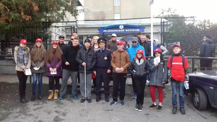 Сотрудники ОГИБДД ОМВД России по г. Кисловодску при участии волонтеров центра молодежи города Кисловодска и студентов Кисловодского медицинского колледжа Министерства здравоохранения Российской Федерации провели акцию, касающуюся преимущества в движении, которым пользуются слабовидящие пешеходы. Среди водителей распространялись листовки об уважении к пешеходам.
