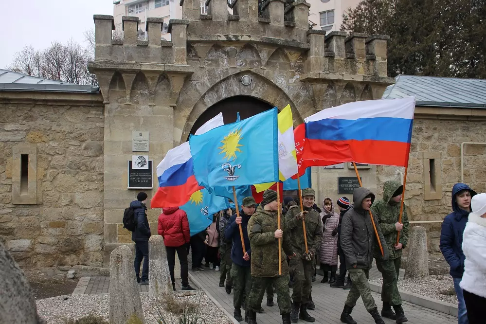 Турпоход приурочили ко Дню защитника Отечества. В нем приняли участие школьники, преподаватели, культработники, волонтеры, представители администрации города. Больше сотни человек прошли пешком по местам воинской славы Кисловодска.