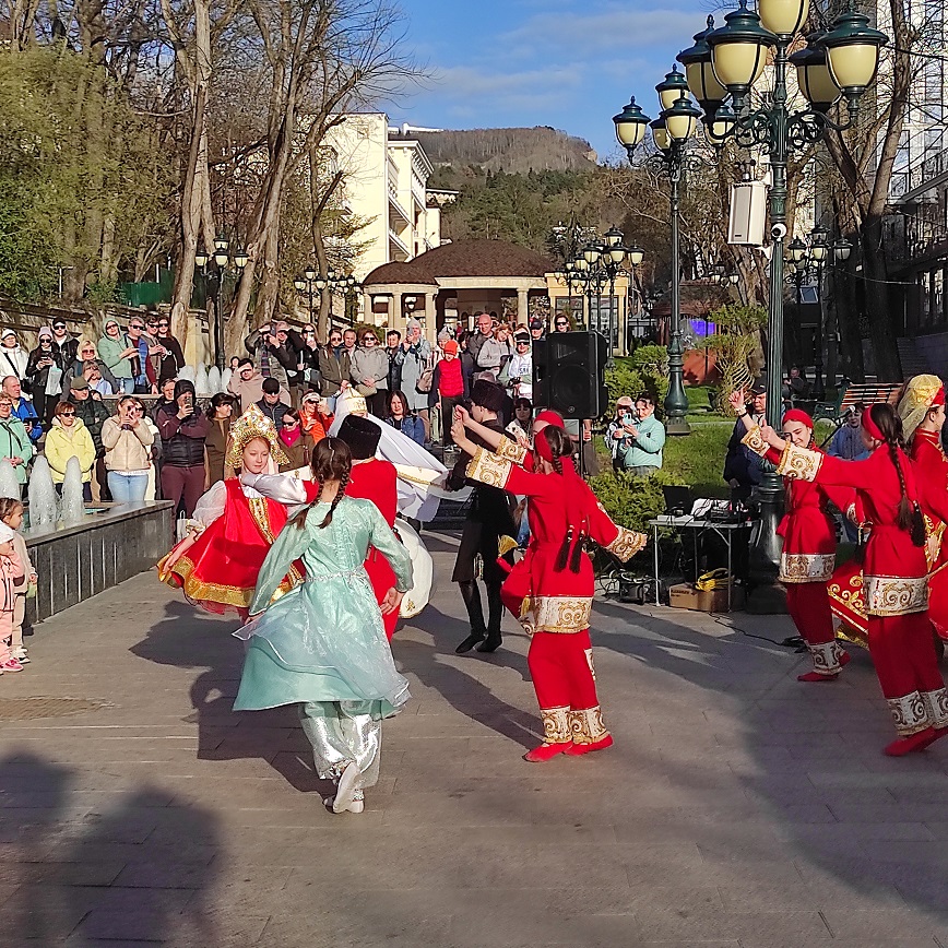 Фонтанные струи танцевали в ритме мелодий, туристы впитывали атмосферу весеннего Кисловодска, в горные ущелья уносились аккорды предстоящего майского юбилея Великой Победы.