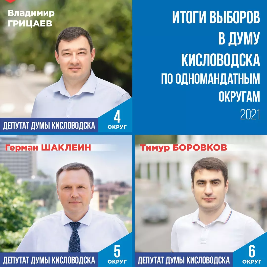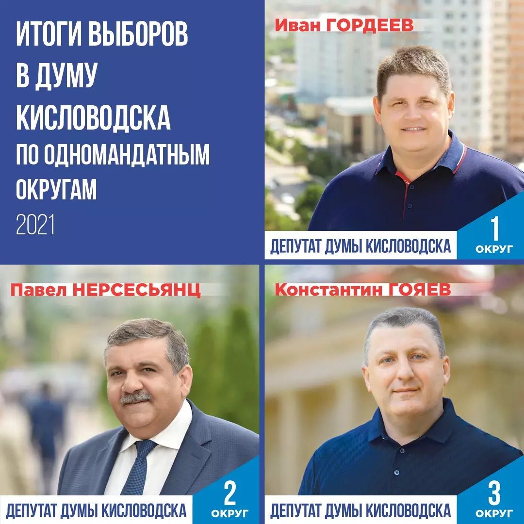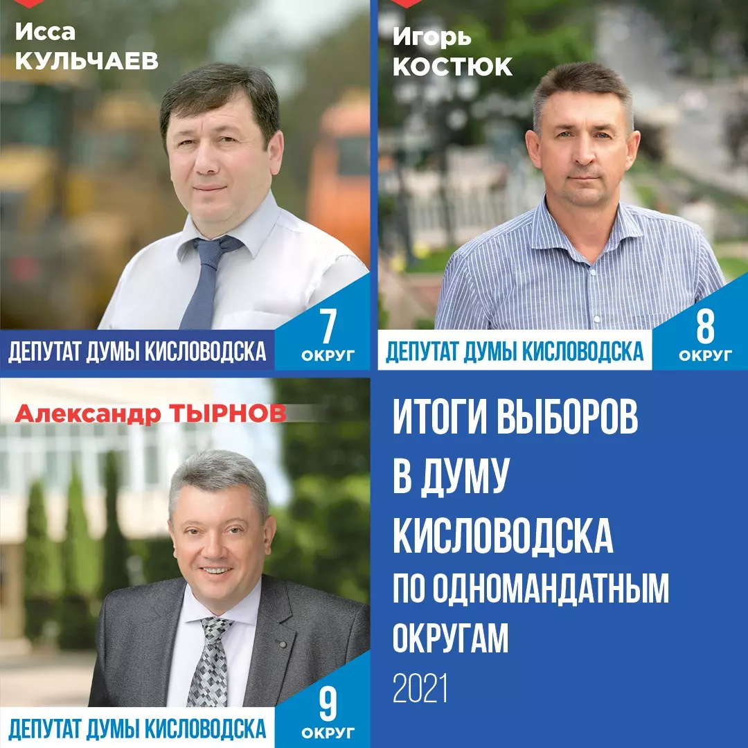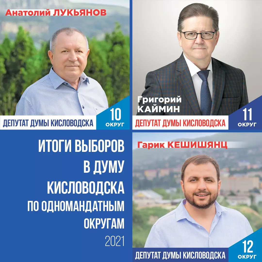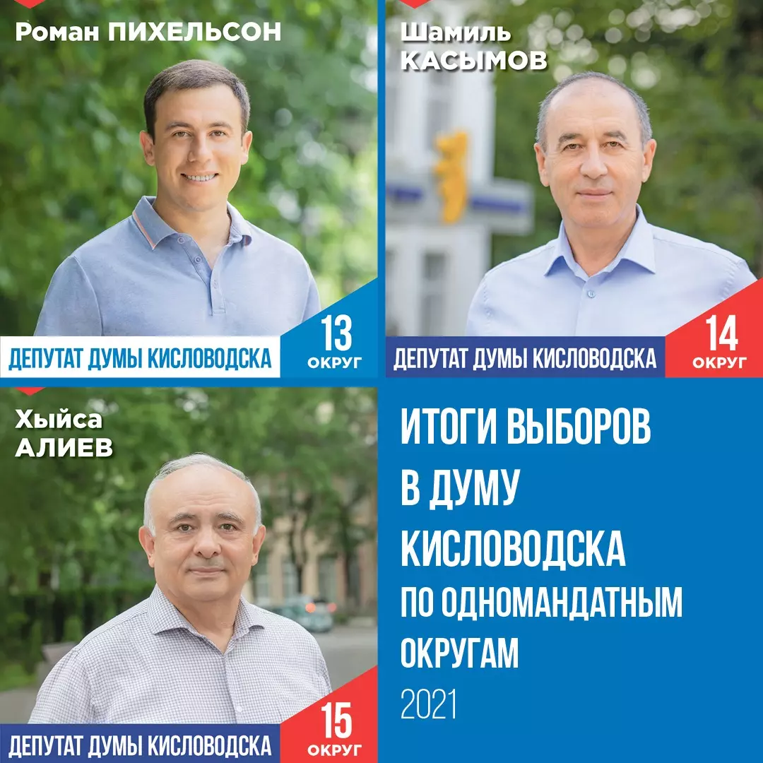 Подведены итоги выборов в Думу города-курорта Кисловодска. Явка на муниципальных выборах составила 48,33 %, победили представители партии «Единая Россия». По 15 одномандатным избирательным округам депутатами думы VII созыва избраны: