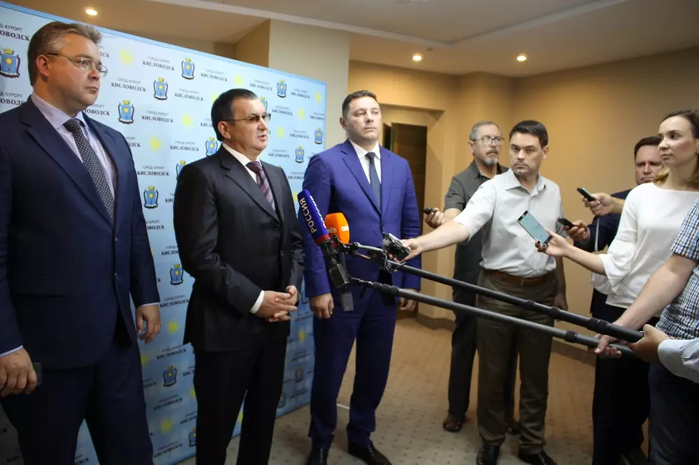 На прошедшем в рамках визита совещании губернатор Ставрополья Владимир Владимиров сообщил, что сейчас продолжает прорабатываться вопрос строительства дороги Кисловодск — Сочи. Участники совещания обсудили и проблемные темы: реставрацию санатория Орджоникидзе, рекультивацию свалок, ремонт дорог.