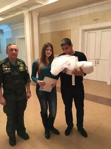 С радостным событием семьи Алексея и Натальи Князевых, Артура и Кристины Арутюнян поздравили почетные гости: председатель Союза офицеров «Офицерская честь» капитан II ранга Борис Фарзалиев и председатель клуба «Пограничник» Кисловодского Совета ветеранов Владимир Савин. Вручив счастливым родителям первый в жизни документ — свидетельство о рождении Алексея и Арсена, — они пожелали воспитать сыновей достойными защитниками Отечества.