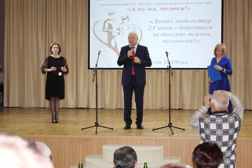 На торжественном открытии конкурсантов приветствовали глава города-курорта Александр Курбатов, председатель думы Любовь Волошина и, конечно, хозяин площадки — директор Кисловодского медицинского колледжа, заслуженный врач РФ, доктор медицинских наук профессор Николай Истошин, объявивший начало конкурса.