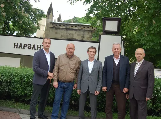 Фото для истории. Команда, пять лет хранившая Курортный парк, с гендиректором ФМЦ В. Гаркавенко(в центре). Слева направо: заместители директора санатория Орджоникидзе Д. Науменко и Д.Ожегов, гендиректор санатория В.Черевашенко и его первый заместитель В.Мазуров.