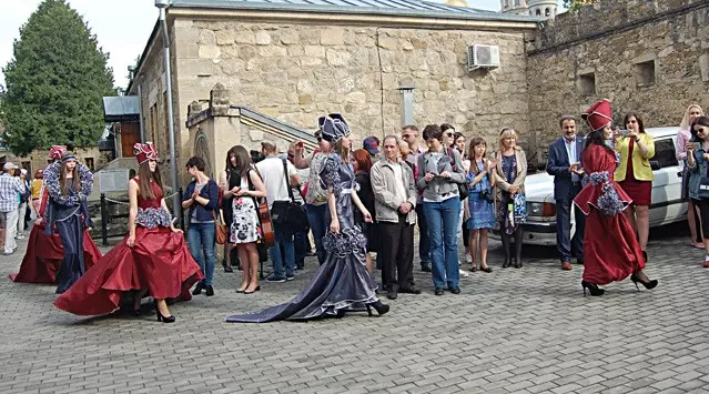 Поэтичное настроение навевали и потрясающие женские костюмы, коллекции «Царица» и «Багровый пик», созданные модельерами факультета дизайна и искусств Северо-Кавказской государственной гуманитарно-технологической академии под руководством замдекана по воспитательной работе Зулейки Хапчаевой. Девушки в эффектных платьях со шлейфами и немыслимо сложных головных уборах в стиле нартского эпоса, дефилировавшие по лужайке перед крепостной стеной, не оставили равнодушными никого.