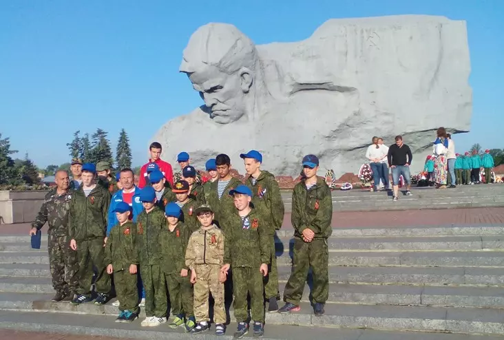 Офицер по воспитательной работе Пьянков А.С. организовал познавательную экскурсию. Курсанты-экскурсоводы, одетые в форму пограничников времен Великой Отечественной войны рассказали историю создания и развития пограничных войск, приглашали поступать в их институт, показали мешочек со священной землей из Брестской крепости. Узнав, что целью автопробега является именно Брестская крепость – просили поклониться от их имени священной земле, так как при обороне Брестской крепости во время Великой Отечественной войны погибло много выпускников Голицынского пограничного института. Затем ребятам разрешили сфотографироваться с экспонатами, находящимися в комнате воинской Славы.