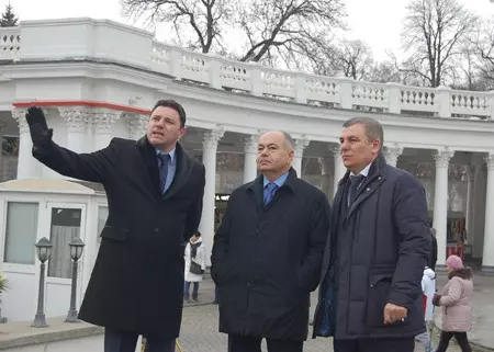 Заинтересованный разговор состоялся между спикером РФ и владельцами земельных участков на Курортном бульваре, 13, напротив здания Нарзанных ванн. Напомним, что городской администрации удалось-таки договориться с бизнесменами, которые согласились выступить инвесторами возрождения Цветомузыкального фонтана. Стороны увлеченно обсудили и в целом одобрили представленный известным архитектором Арсеном Арустамяном последний вариант проекта будущей площади. Основным замечанием Валентины Ивановны стало недостаточное озеленение ее территории, а пожеланием — при возможности еще больше увеличить чашу фонтана. В общем, можно ожидать, что уже к предстоящему курортному сезону и площадь, и фонтан вернутся на Курортный бульвар. Завершающим пунктом рейда стала красавица-Колоннада, после реконструкции радующая жителей и гостей своей архитектурой и изумительной иллюминацией
