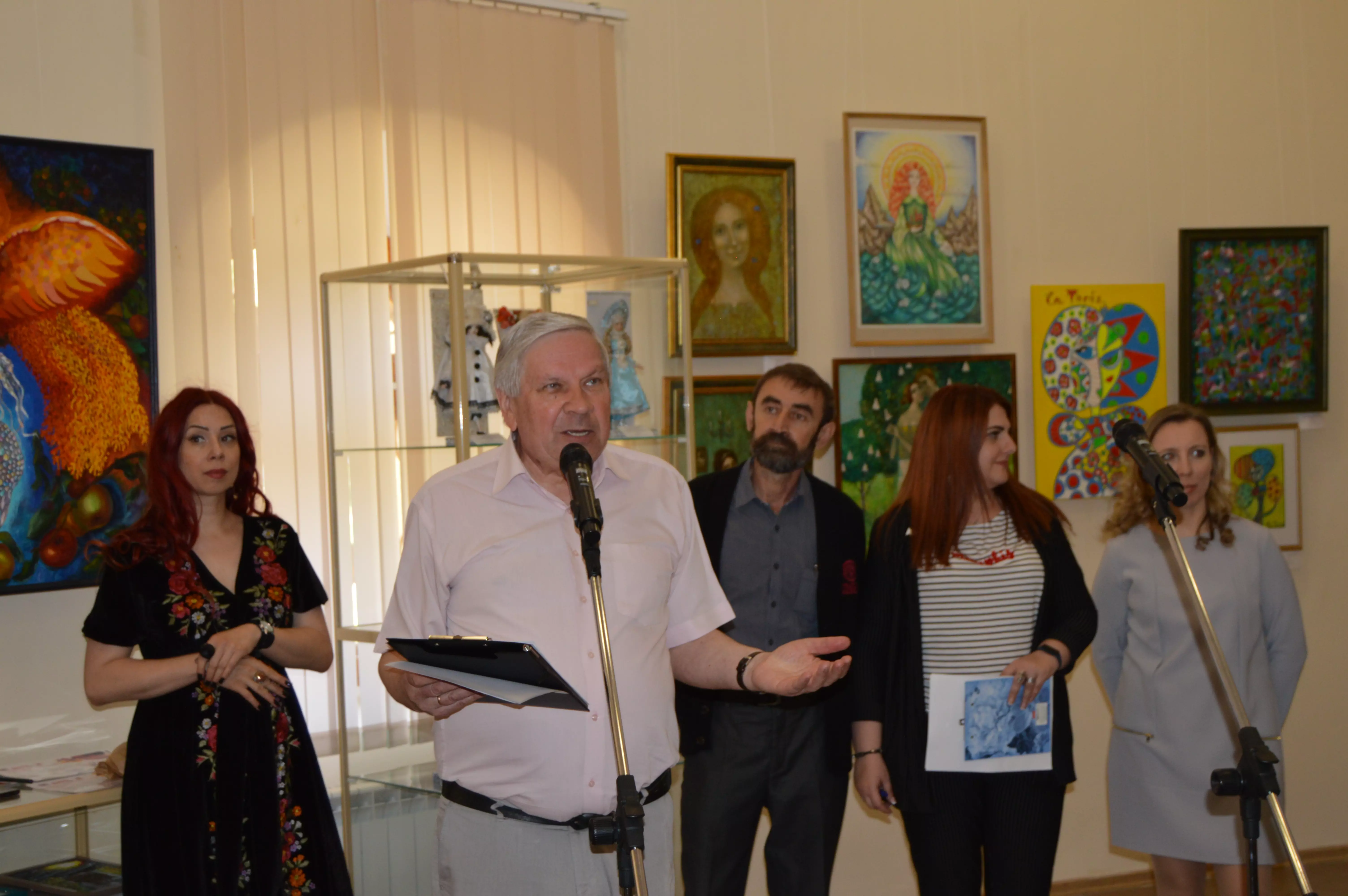 Председатель жюри конкурса Ю.М. Ханмагомедов на открытии выставки обратился к присутствующим с приветственным словом. Он подчеркнул знаковый, юбилейный характер мероприятия, проводимого уже десятый год подряд. «Дорогие друзья, вся атмосфера Кисловодска пронизана любовью и, глядя на ваши счастливые, улыбающиеся лица мне хочется сказать вам следующее – вы уже успели, наверное, ознакомиться с экспозицией и наверно вас сразило то количество жанров, техник, как и география художников представленных на этой выставке….» — отметил Ю.М. Ханмагомедов.