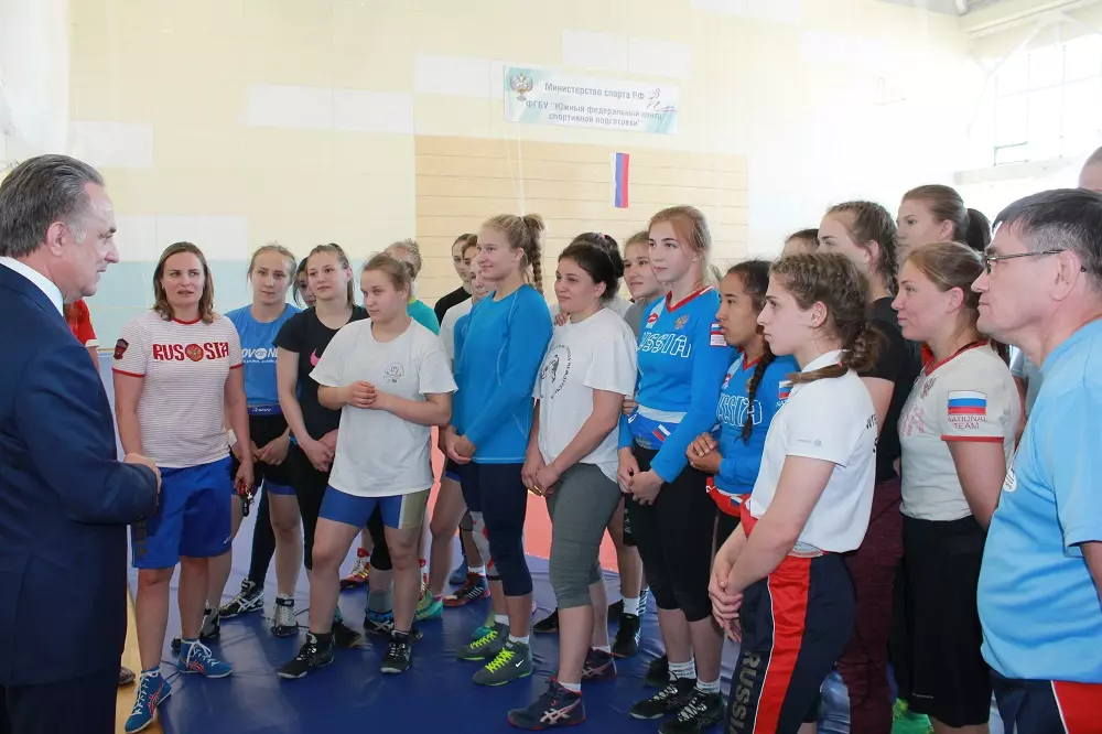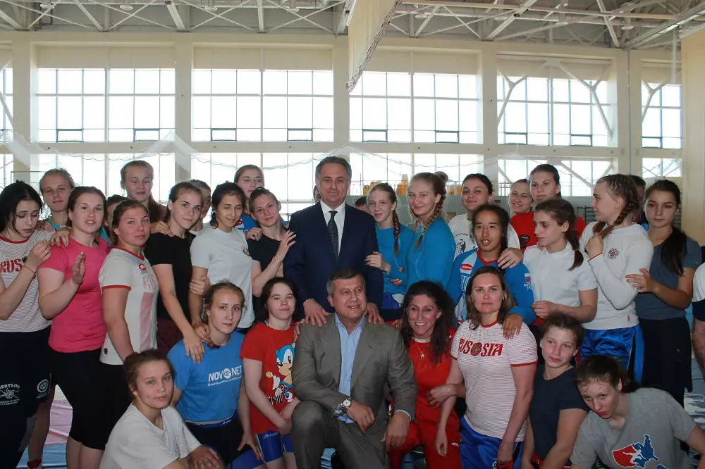 Вице-премьер вместе с генеральным директором ФГБУ «Национальный парк «Кисловодский» Дмитрием Науменко и сопровождавшими лицами осмотрели уже введенные в эксплуатацию спортивные объекты – поле для регби с искусственным покрытием, на котором как раз проходил финал турнира по футболу среди детских команд города, посвященный памяти и скорби 22 июня. Затем Мутко посетил спортивно-тренировочный комплекс, который включает в себя зал бокса, два тренажерных зала, зал тяжелой атлетики и универсальный зал. Пообщавшись с тренерами сборной России по тяжелой атлетике, посмотрев на тренировку каратистов и горнолыжников, заместитель председателя Правительства направился в универсальный зал, где в это время проходили всероссийские соревнования по художественной гимнастике «Кубок Ставропольского края». Полюбовавшись на зрелищные выступления юных гимнасток, Мутко поприветствовал женскую сборную России по вольной борьбе, у которых в это же время проходила тренировка на другой половине зала.