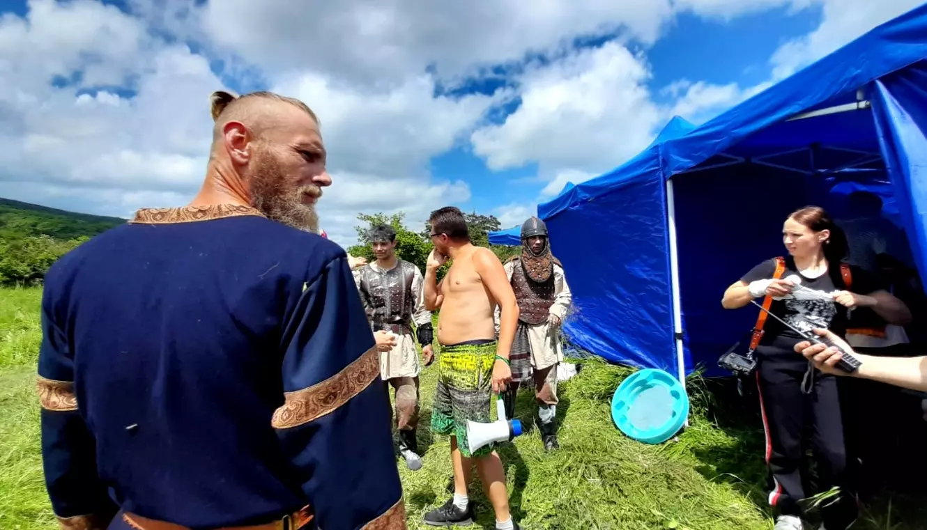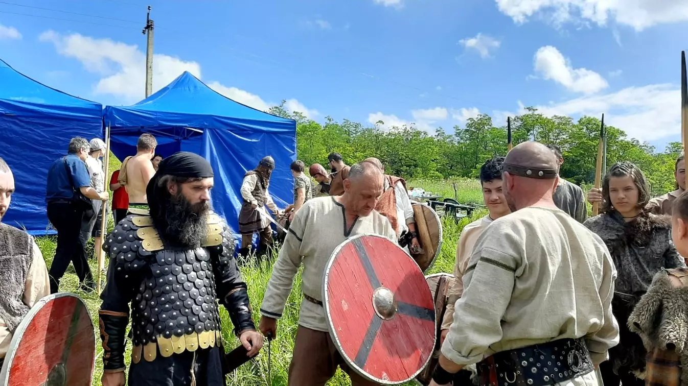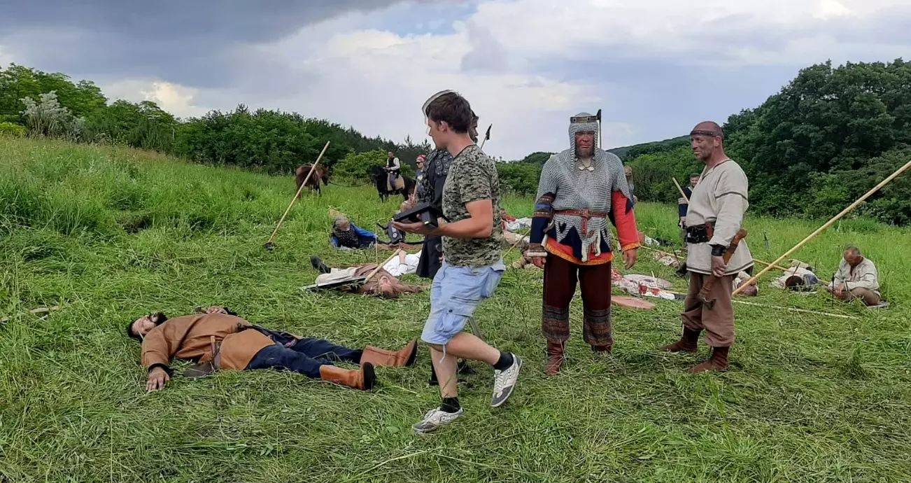 И вот сама история «Бронзового века» оживает под руководством умелого «дирижёра» Дениса Корнилова. Его симфонический «оркестр» заиграл. И «машина времени» переносит творческий коллектив в 50 человек, включая костюмеров, гримёров, оператора, фотографа, артистов и просто очевидцев, в 4 век до нашей эры. На поле сражения в художественной интерпретации воссозданы элементы исторической реконструкции сражения местного протославянского племени, защищающего свою землю от набега германцев (готов). Идёт неравный бой. Все гибнут.