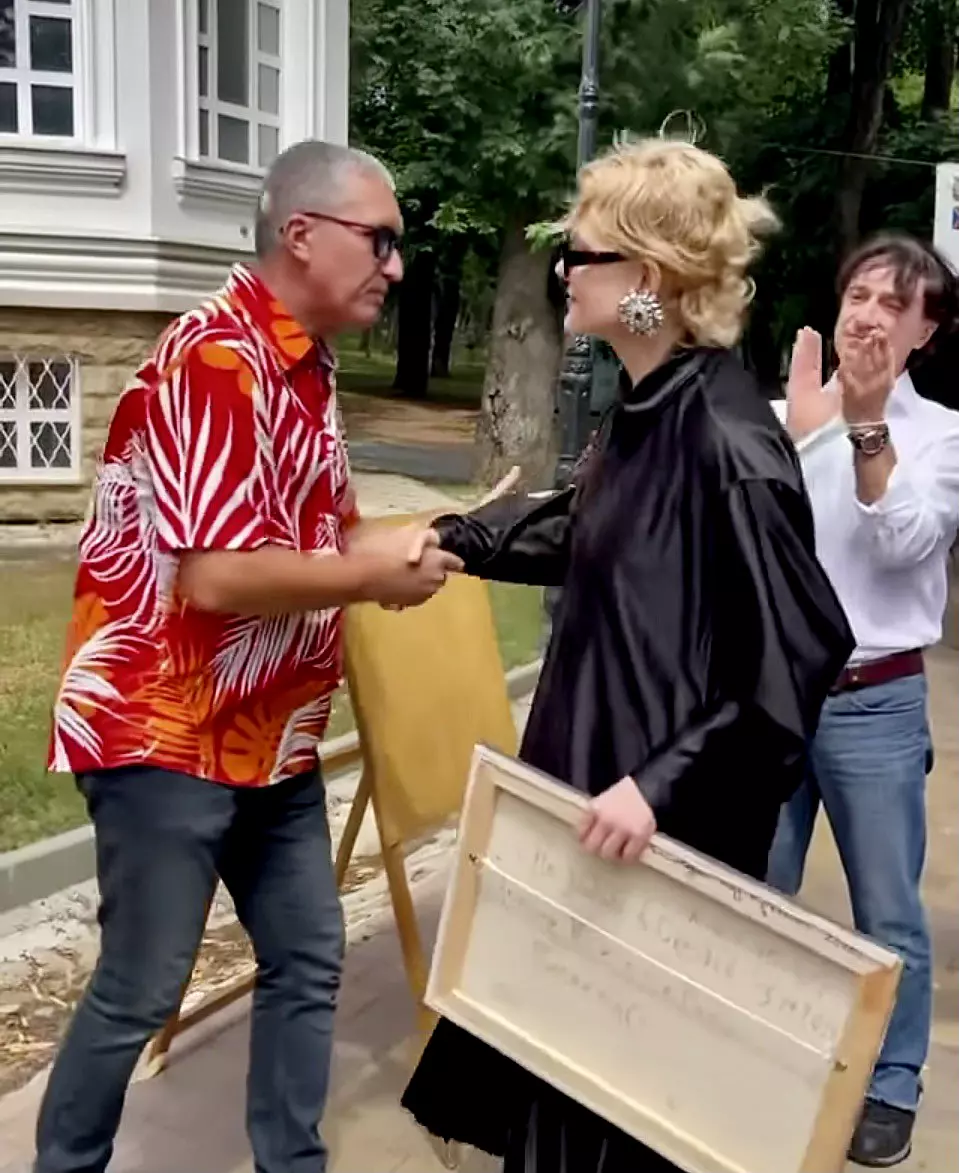 От общение с Ренатой Литвиновой у художников остались лишь самые приятные впечатления. А вот знакомство её с пятигорским художником Игорем Хоронько облетело все аккаунты инстаграм, посвященные и проходу Ретаны по Главной аллее, и ее пресс-конференции. Актрисе очень понравились работы Игоря и он подарил Литвиновой две своих работы. Одну – Ессентукская грязелечебница, на пресс-конференции, другую Ретана отметила сама, увидев на пленэре.