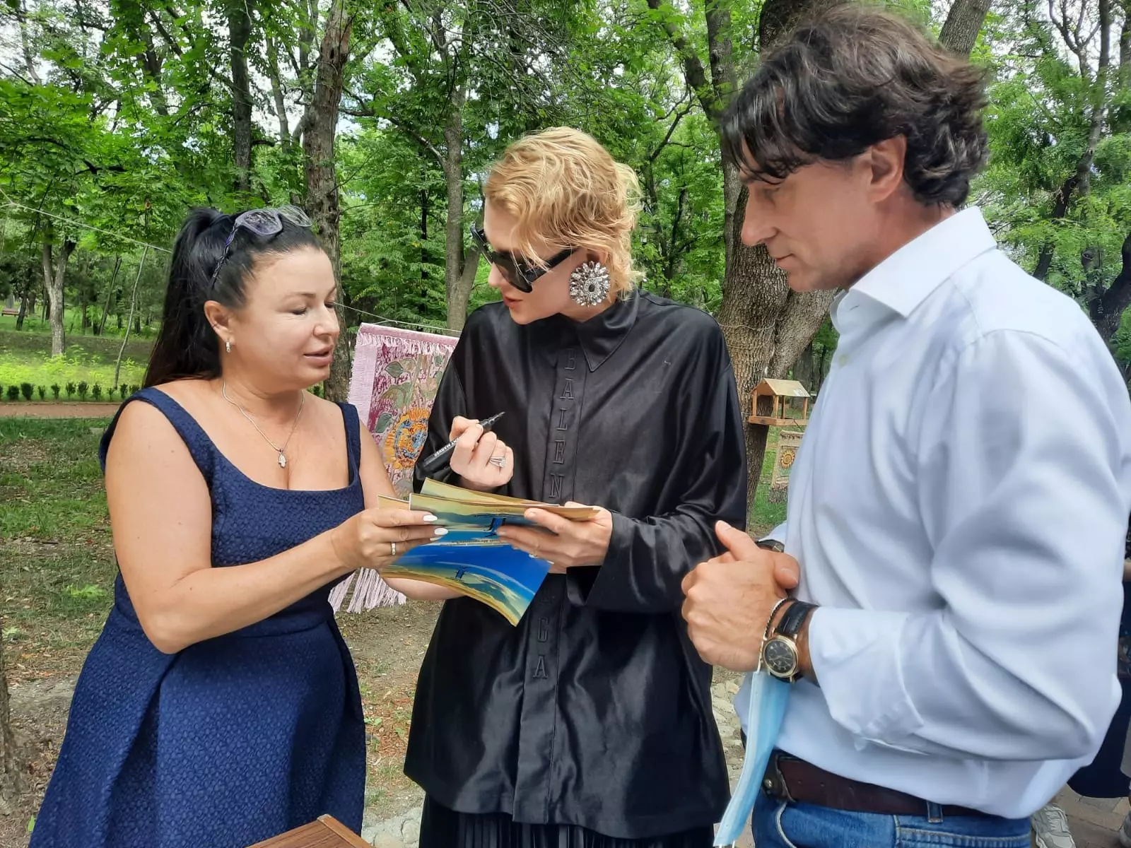 Несмотря на то, что в день пресс-конференции Рената Литвинова улетала в Москву, она никому не отказала ни в автографе, ни в совместной фотосъемке. А затем с Эвклидом Кюрдзидисом они пошли по Главной аллее Курортного парка Ессентуков, которая на время фестиваля превратилась в вернисаж-пленэр художников представляющих различные регионы России.