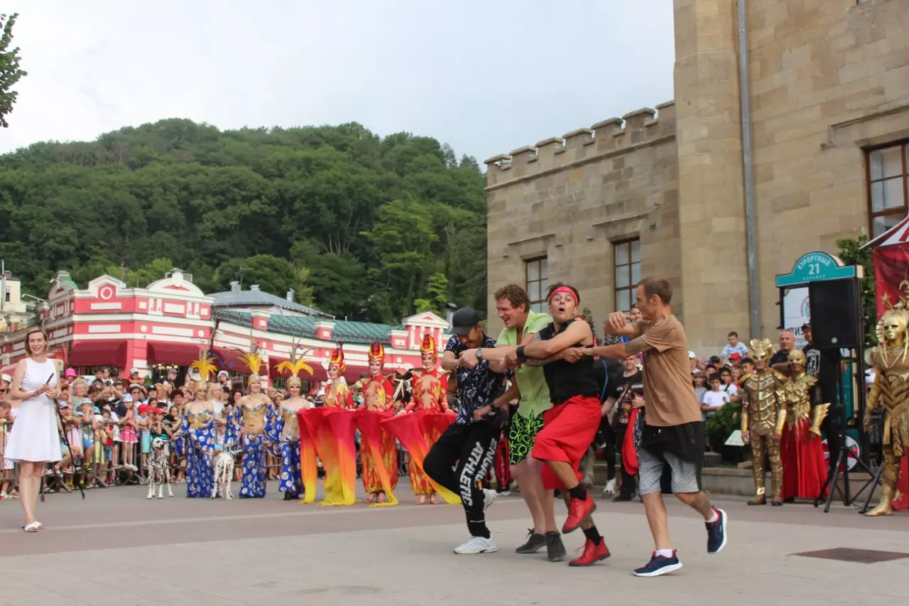 Подобного Кисловодск еще не видел. Толпы жителей и гостей курорта, заполонившие проспект Победы и Курортный бульвар, от здания цирка вплоть до Нарзанной галереи. А над головами – видеокамеры, фотоаппараты, телефоны, то есть все, чем можно запечатлеть невиданное зрелище: первое в истории Кисловодска цирковое шествие, да еще и во главе с руководителями города, раздающими приветствия и даже буклеты.