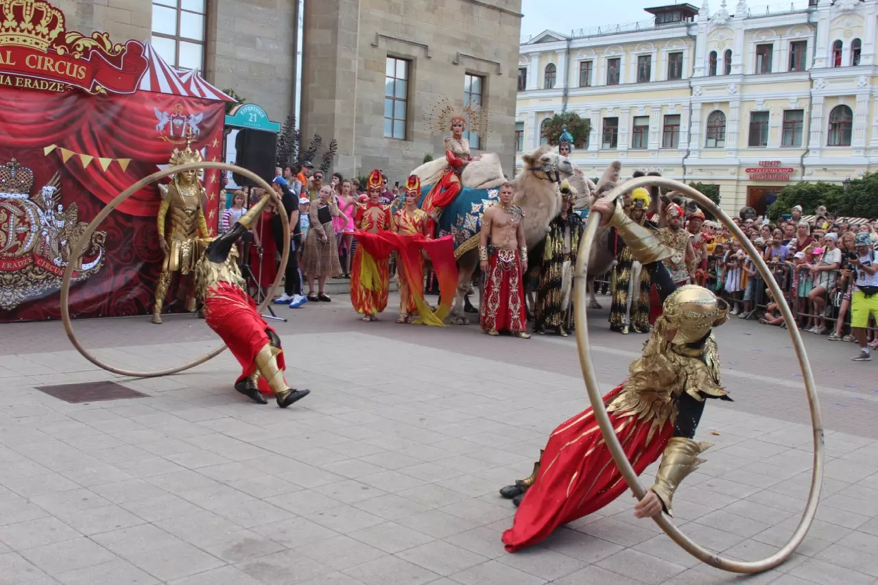 После приветствий и аплодисментов спикерам на бульваре воцарилась настоящая, таинственная сказка Востока. Участие в незабываемом мини-шоу приняли акробаты в колесе Сира, буффонадные жонглеры – семья Чугуновых, эквилибристка Татьяна Белова и роскошный балет. После представления шествие направилось обратно к цирку, восхищая и увлекая за собой зрителей в сказку Востока.