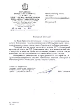 Очень хочется надеяться, что новый руководитель санатория им. Г.К. Орджоникидзе уже освоился на новом месте, и в ближайшее время проявит уважение к гостям и жителям города, устранит-таки весь этот непорядок на дороге, за которую отвечает санаторий (так мне было разъяснено в письме начальника Управления городского хозяйства П.Н. Ткаченко еще в июле 2016 г.). Также, думается, движение любого транспорта по той дороге должно быть полностью остановлено до завершения строительства тротуара. Если там до сих пор не произошло никакого несчастного случая, то это не заслуга, а только везение тех, кто отвечает за данную обходную дорогу. Но везение когда-то обычно заканчивается.