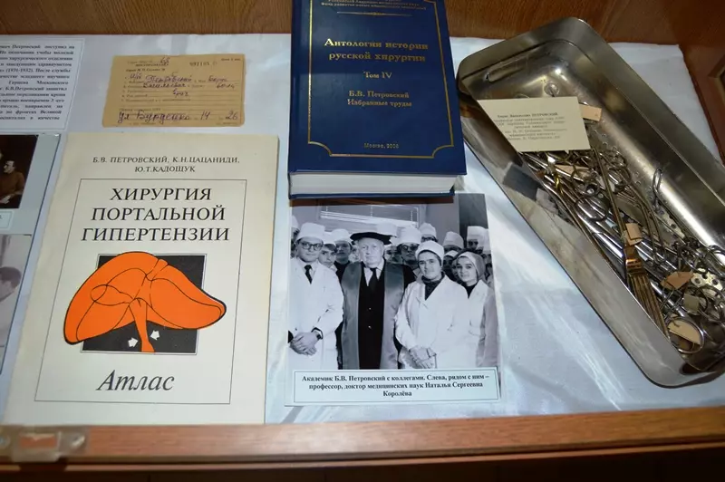 На выставке представлены некоторые научные труды, монографии ученого, документы, а также медицинские инструменты, которыми виртуозно владел наш выдающийся земляк.