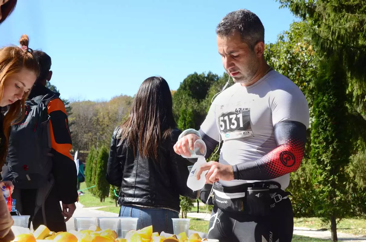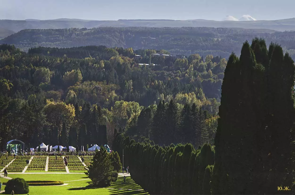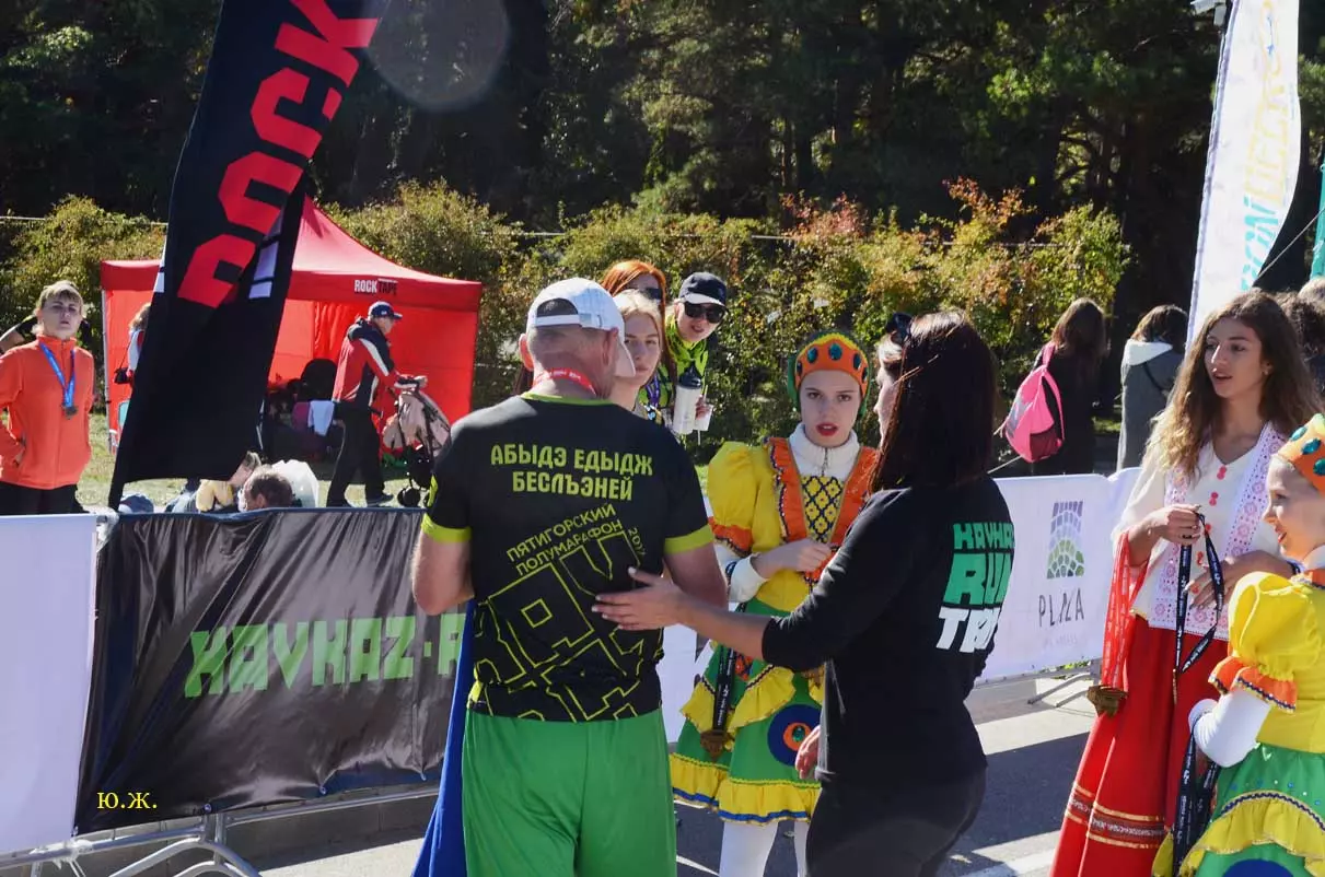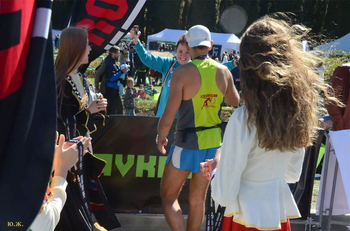 Снова яркий солнечный день,чистейшее синее небо. Со смотровой площадки Долины Роз Эльбрус виден как два куска рафинада, а внизу Долины раскинулся такой же белоснежный лагерь Марафона. Там же старт, там и финиш.