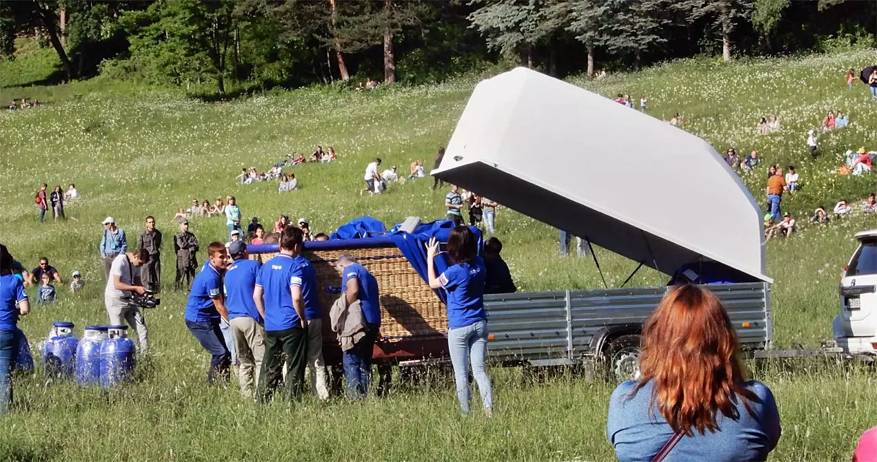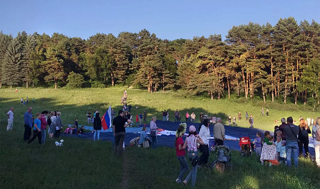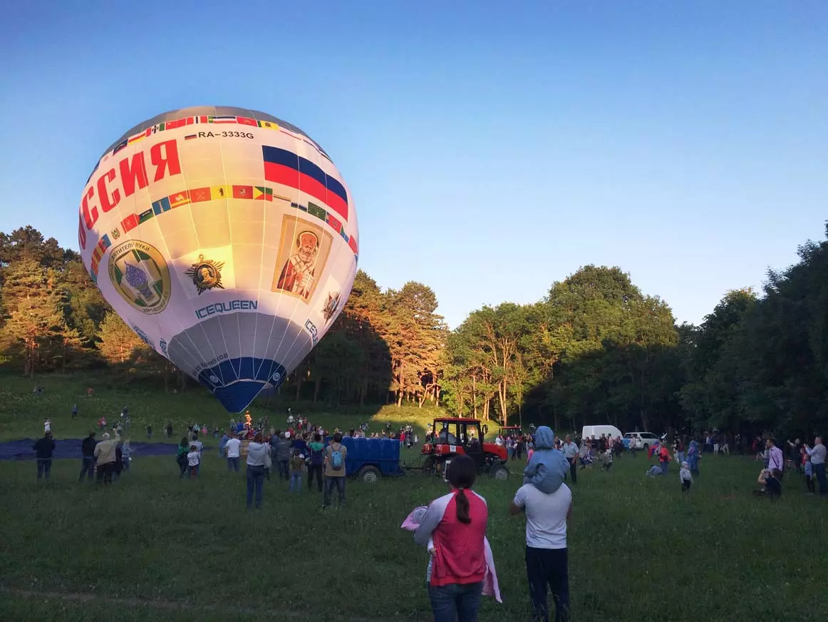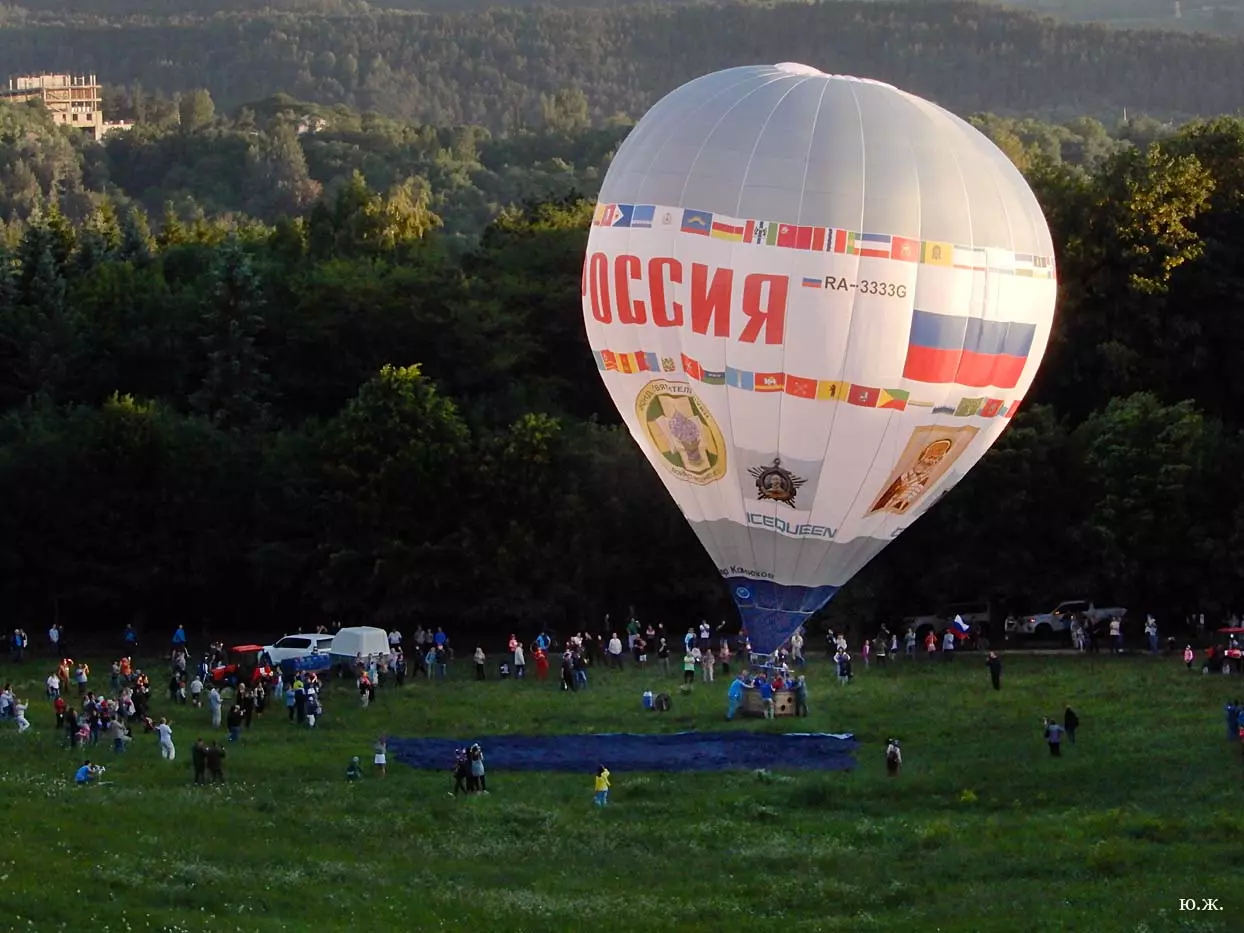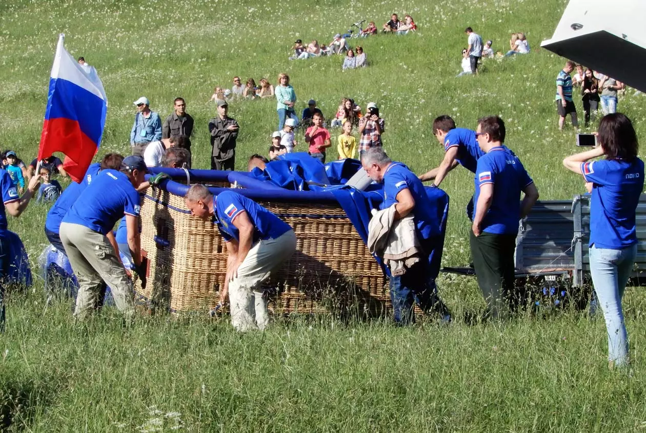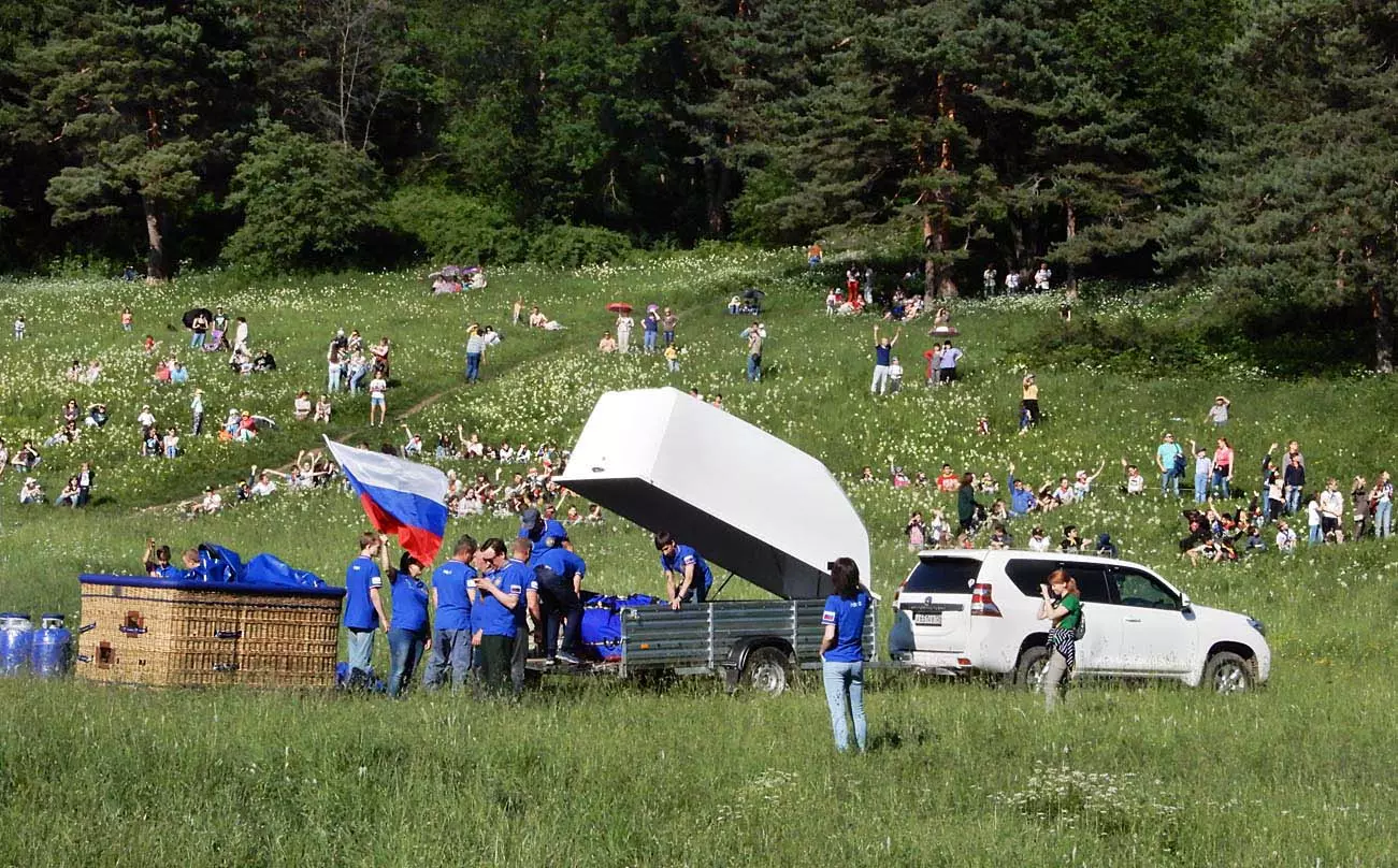 Прибыли и главные герои — экипаж и ассистенты аэростата с именем «РОССИЯ». Позже было объявлено, об отмене полета из за сильного ветра, но все же самые терпеливые смогли заснять впечатляющий отрыв аэростата от земли.