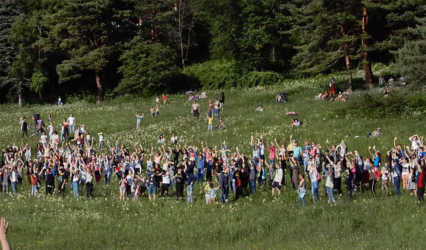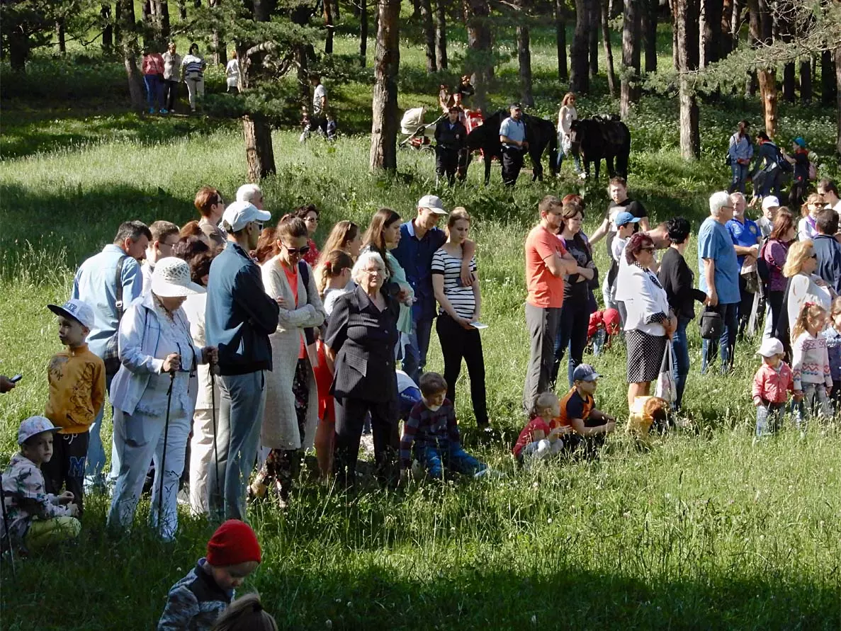 Давно не видела Первомайская поляна столько людей. Яркое солнце, голубое небо с белоснежными облаками, россыпи светлых цветов на изумрудной, умытой прошедшими дождями зелени, громкая музыка — все способствовало торжеству и эмоциональному подъему.