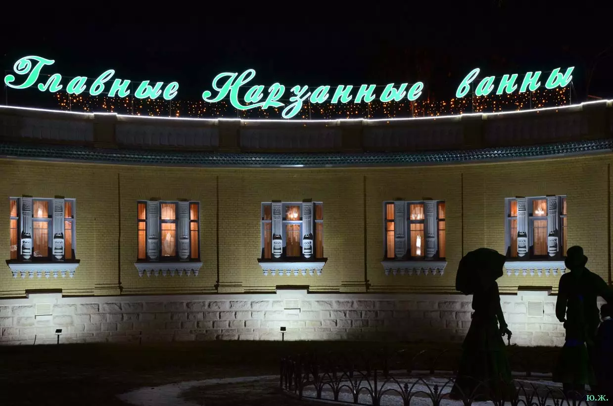 Новогодние торжества в этом, 2019 году, проходят в феерическом буйстве цвета и света, особенно в его центральной части. А Курортный бульвар, как это и должно быть в вечернее время, просто превратился в сгусток световой энергии. Наконец, через столько лет зажглись огни в окнах и без того щедро иллюминированного здания Главных нарзанных ванн, превратившегося в санаторий. Не хватает только снега..