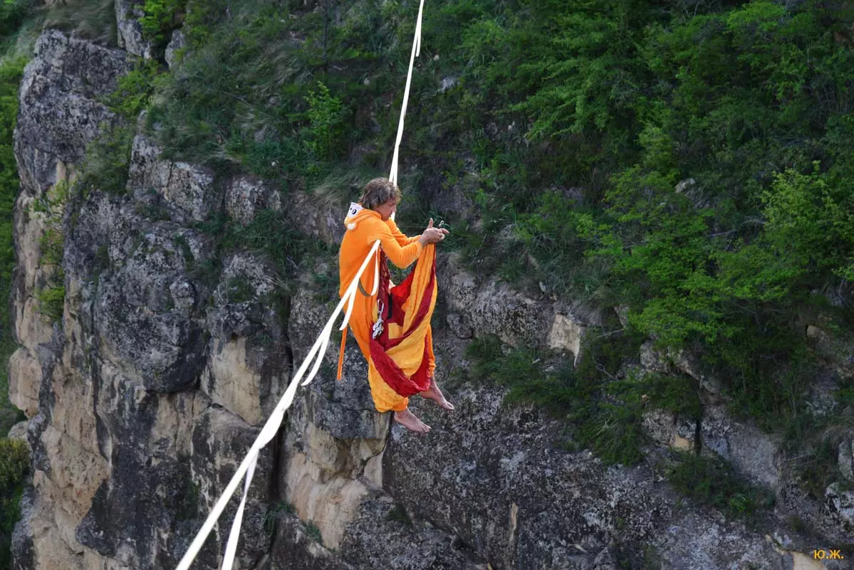 В субботу в Кисловодске завершился фестиваль хайлайна, который, как мы сообщали, второй раз проходил в ущелье реки Березовки. Фоторепортаж об этих шести днях экстрима снял известный фотохудожник Юрий Жванко.