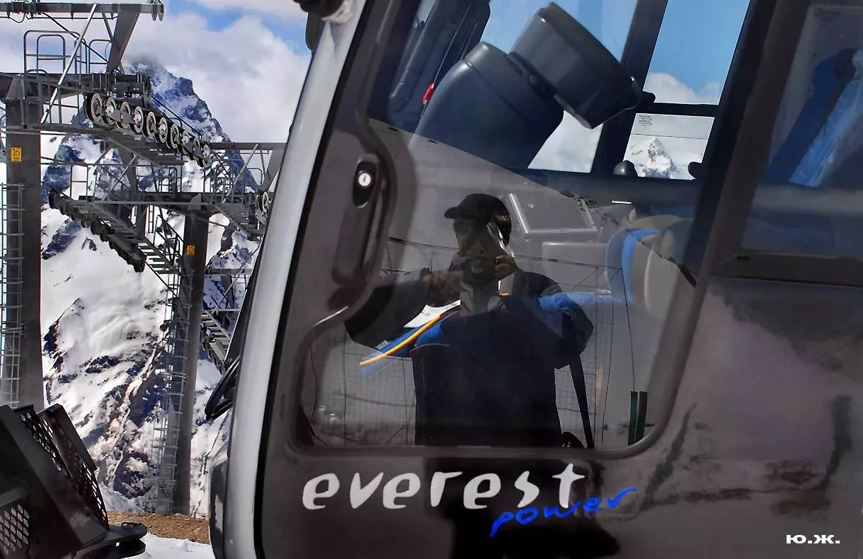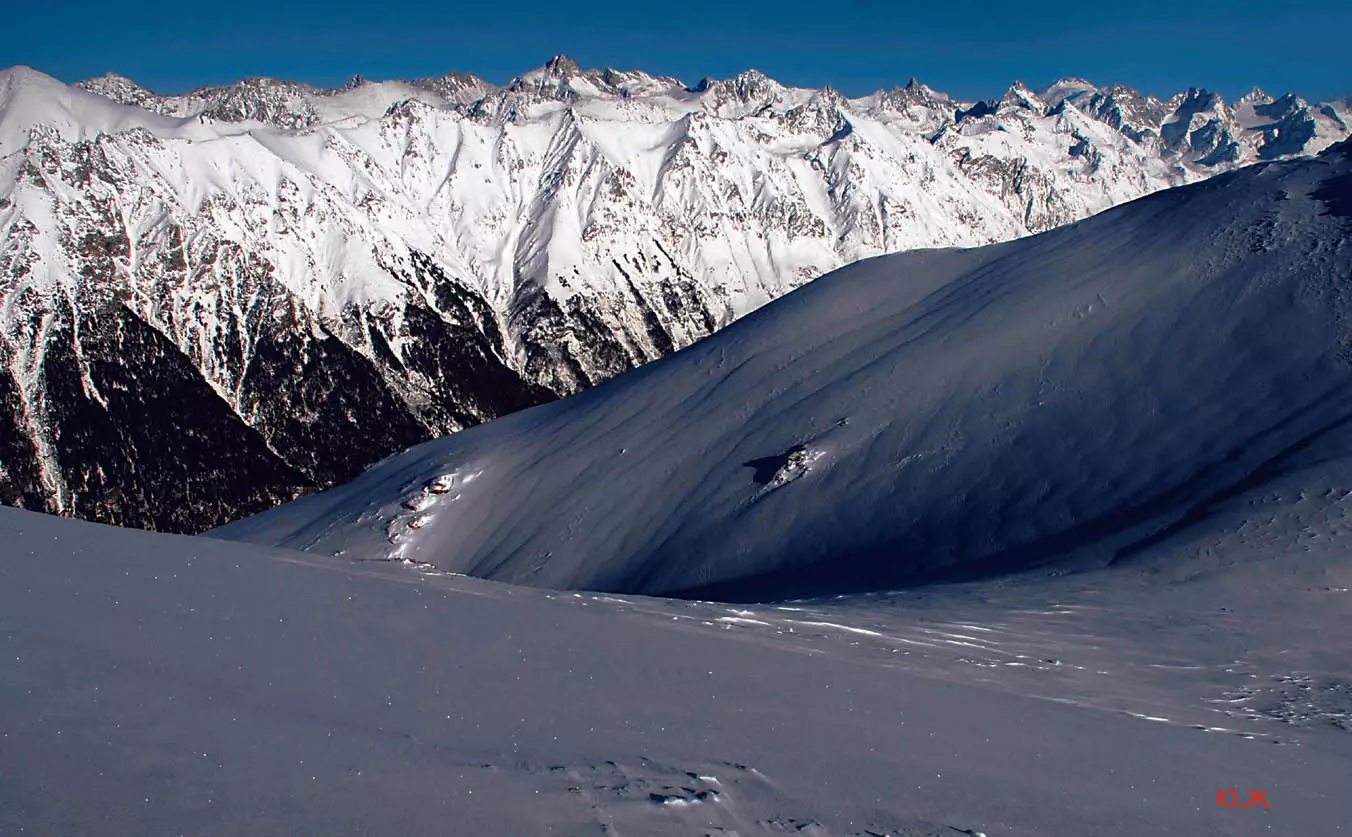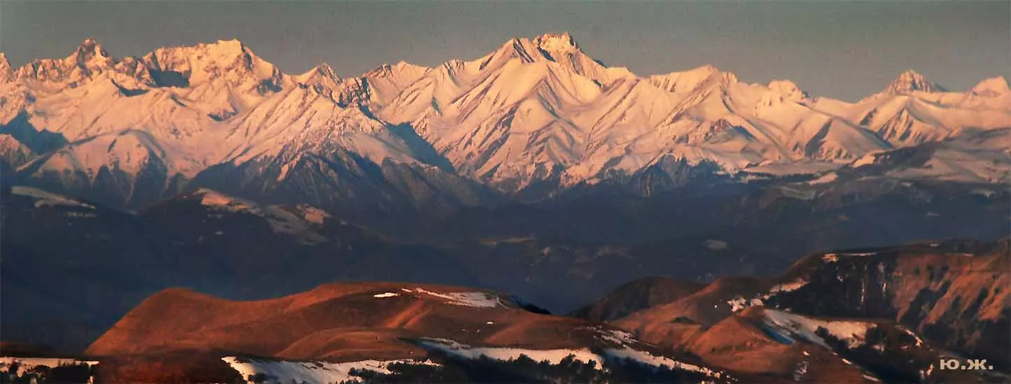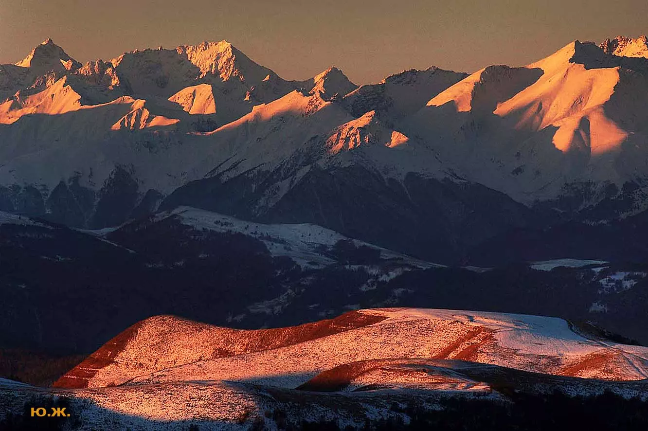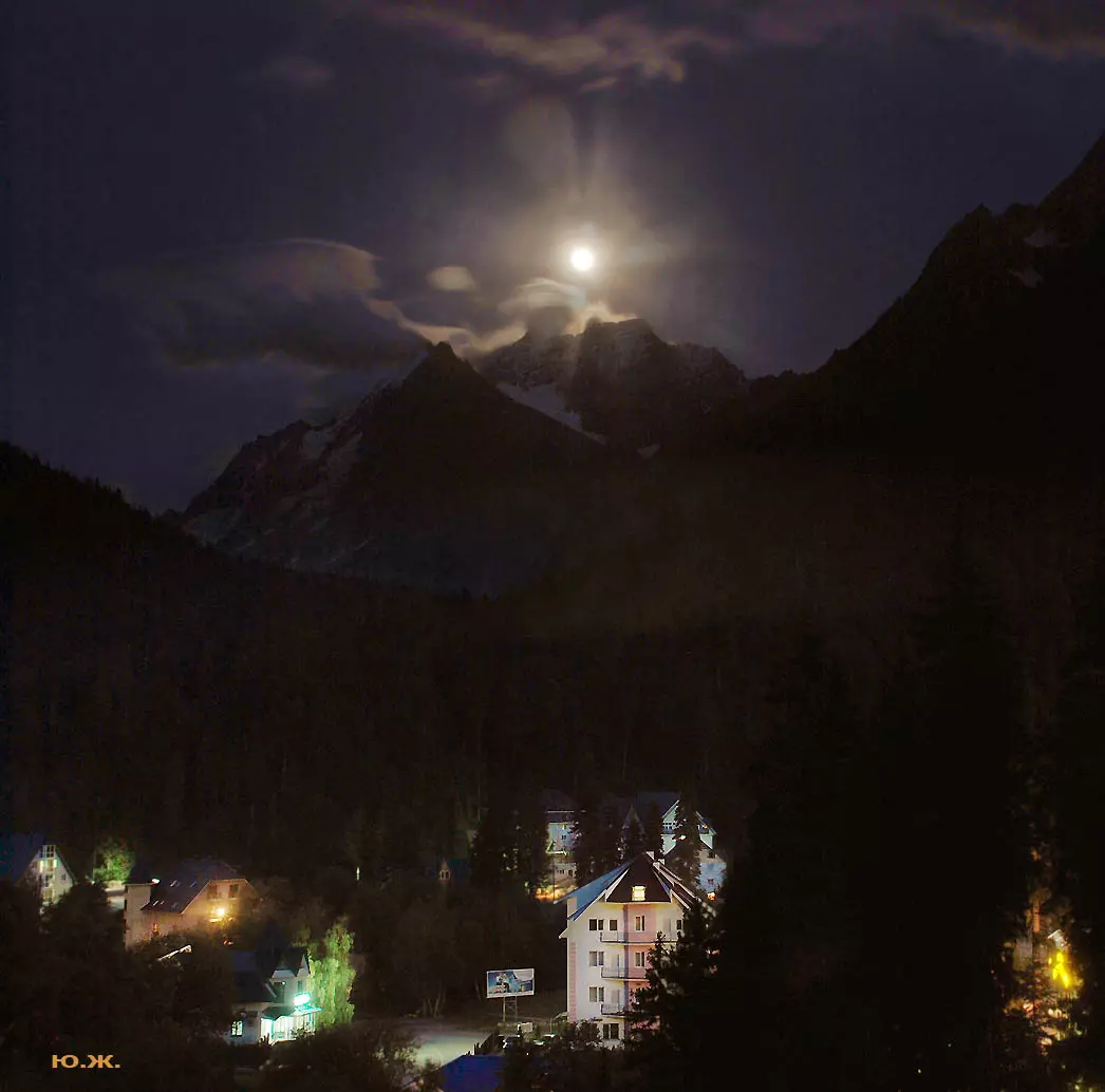 Тогда все сверкает ослепительной белизной. На сотни километров с горных вершин при абсолютном отсутствии атмосферной дымки можно увидеть и Черное, и Каспийское моря. А к закату короткого зимнего дня горы и облака начинают розоветь, алеть от вечернего низкого солнца, и уже долины с ущельями погружаются в синие сумерки, а небо и вершины еще продолжает гореть, освещенное медным солнцем… И вдруг, сквозь разрывы облаков появляется желтая луна, и ты нажимаешь на кнопку затвора камеры — и второй раз и третий и десятый… Это уже высший пилотаж…