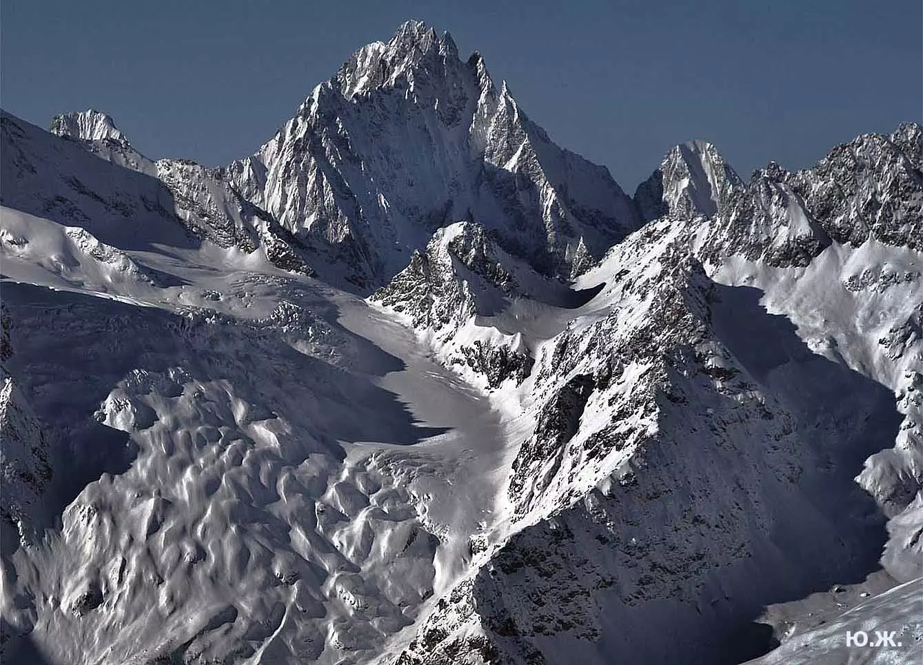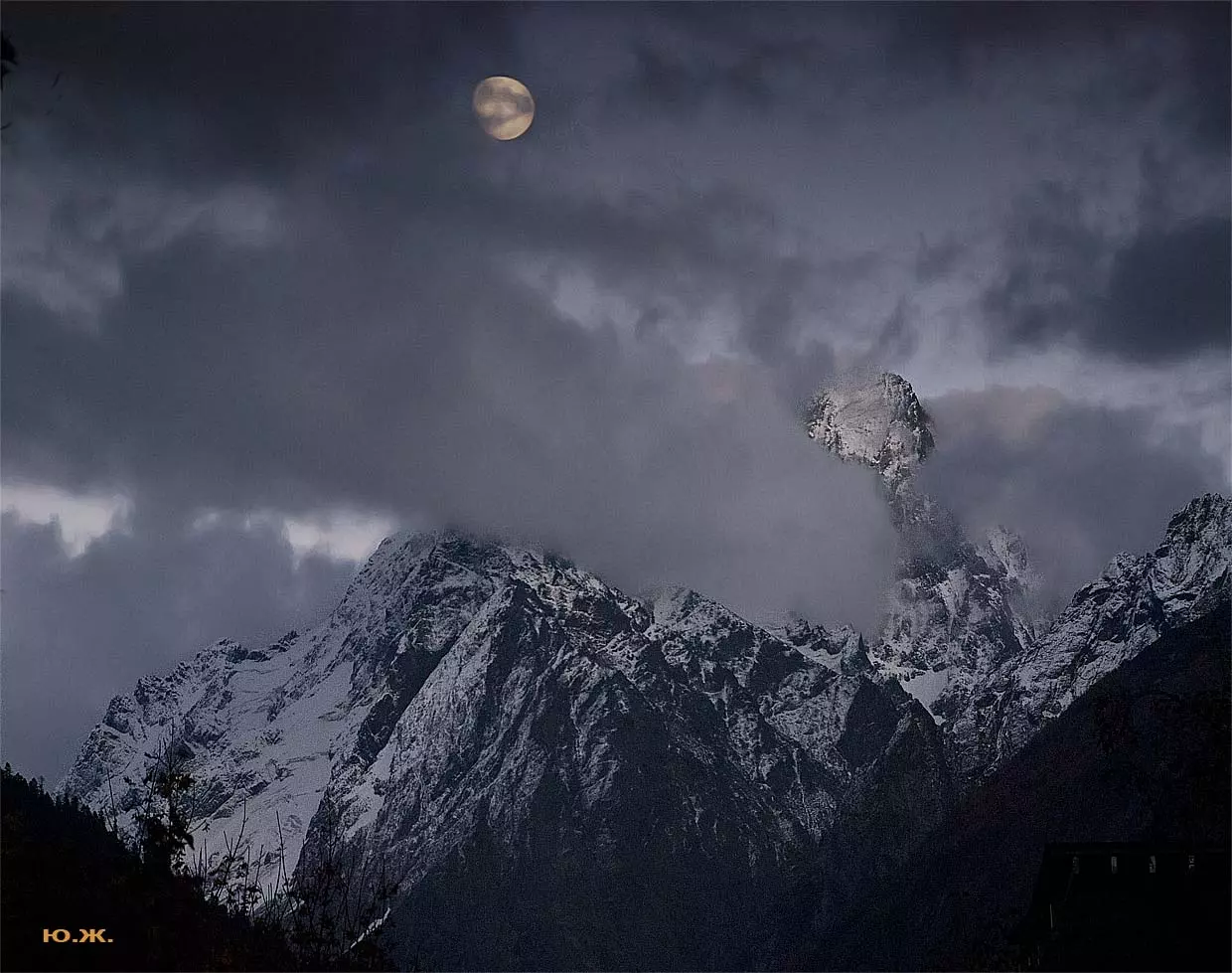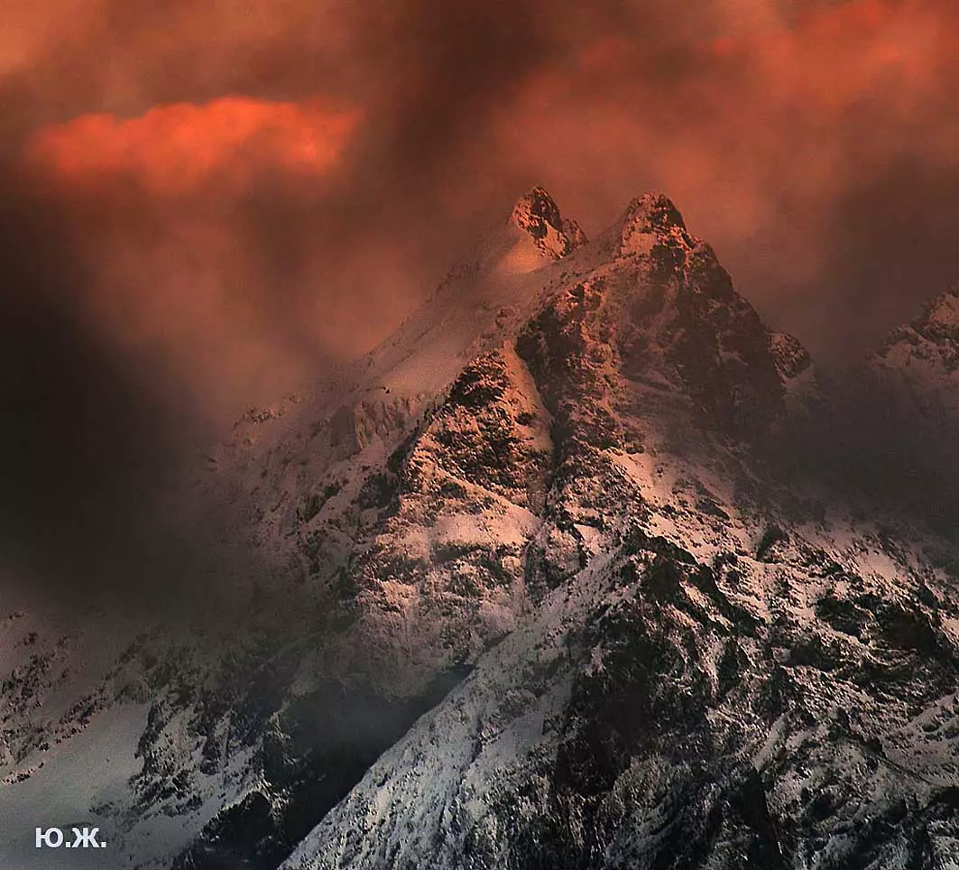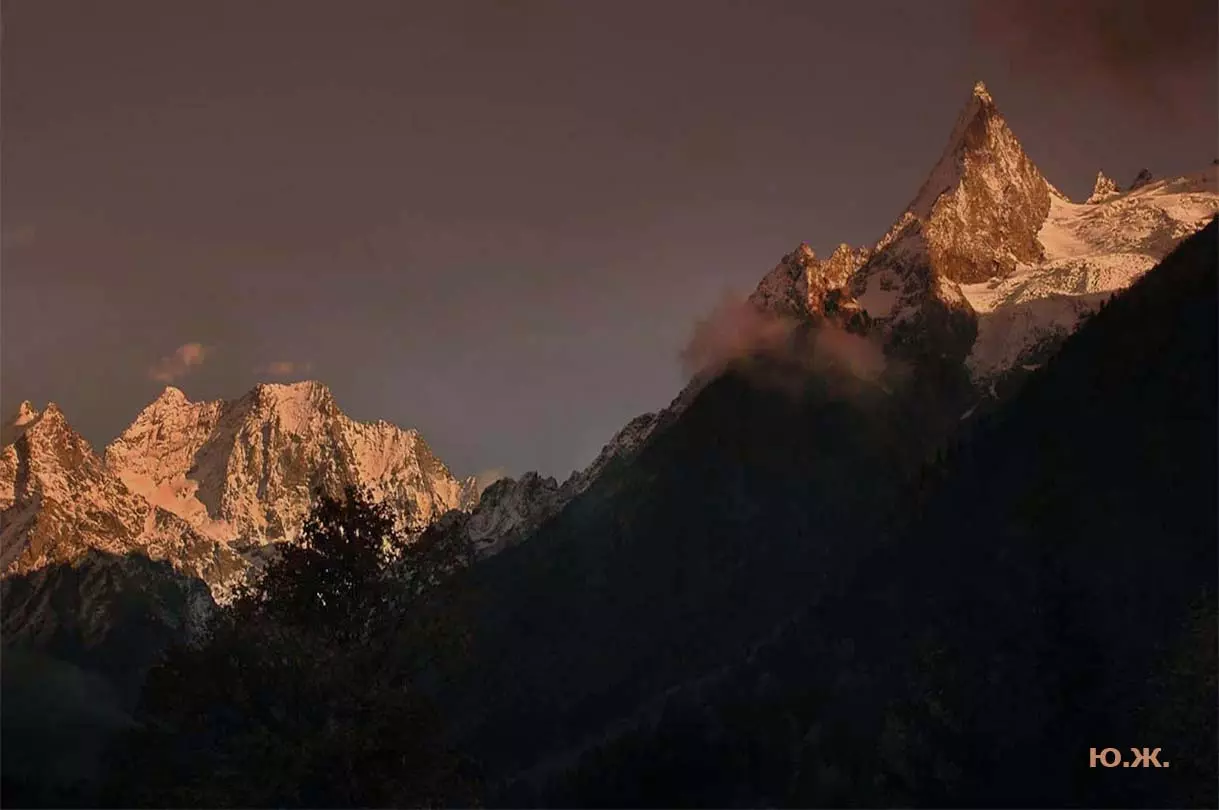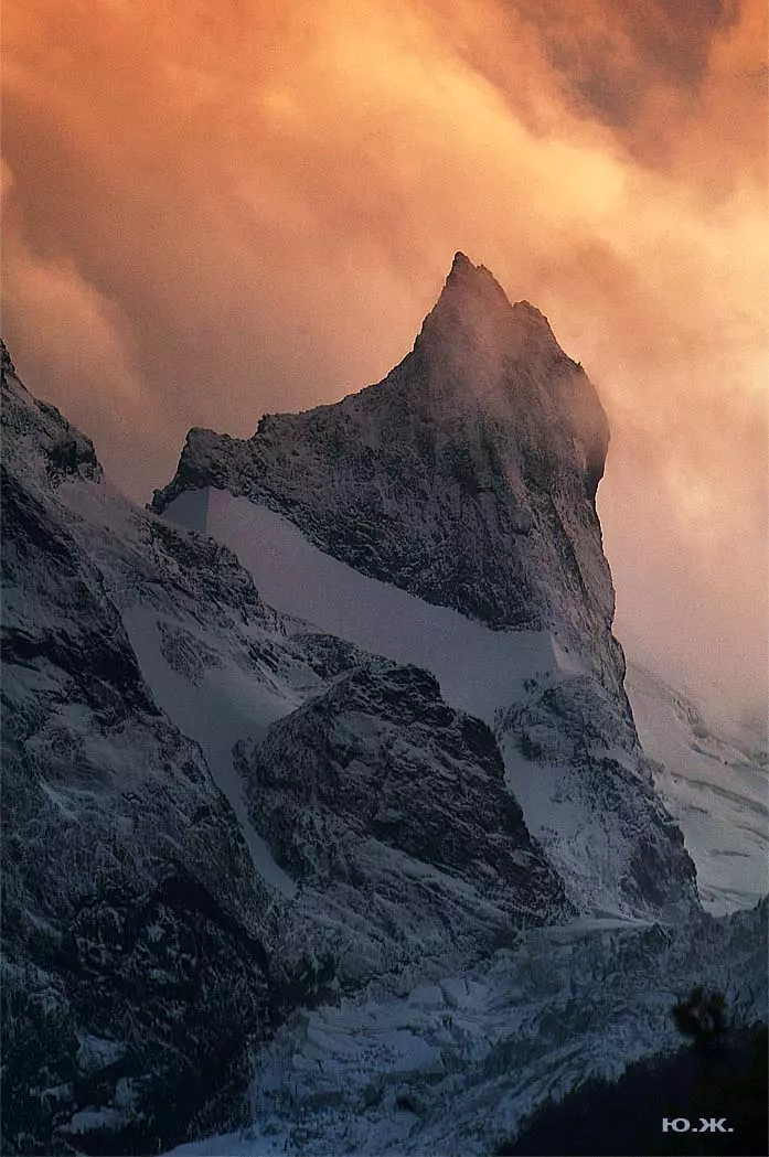 Тогда все сверкает ослепительной белизной. На сотни километров с горных вершин при абсолютном отсутствии атмосферной дымки можно увидеть и Черное, и Каспийское моря. А к закату короткого зимнего дня горы и облака начинают розоветь, алеть от вечернего низкого солнца, и уже долины с ущельями погружаются в синие сумерки, а небо и вершины еще продолжает гореть, освещенное медным солнцем… И вдруг, сквозь разрывы облаков появляется желтая луна, и ты нажимаешь на кнопку затвора камеры — и второй раз и третий и десятый… Это уже высший пилотаж…
