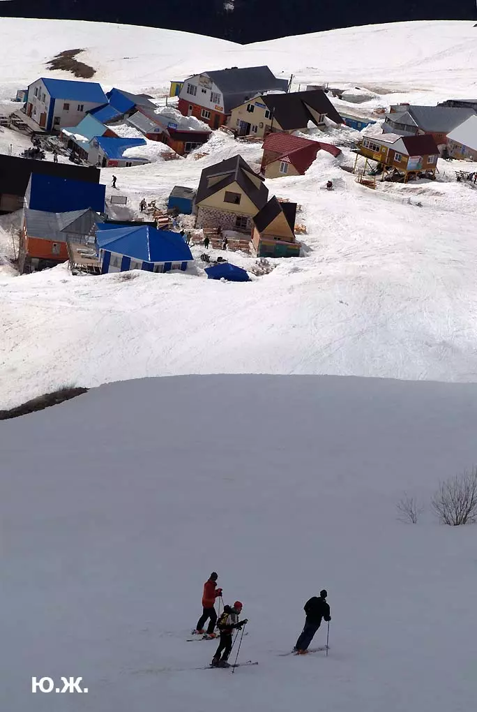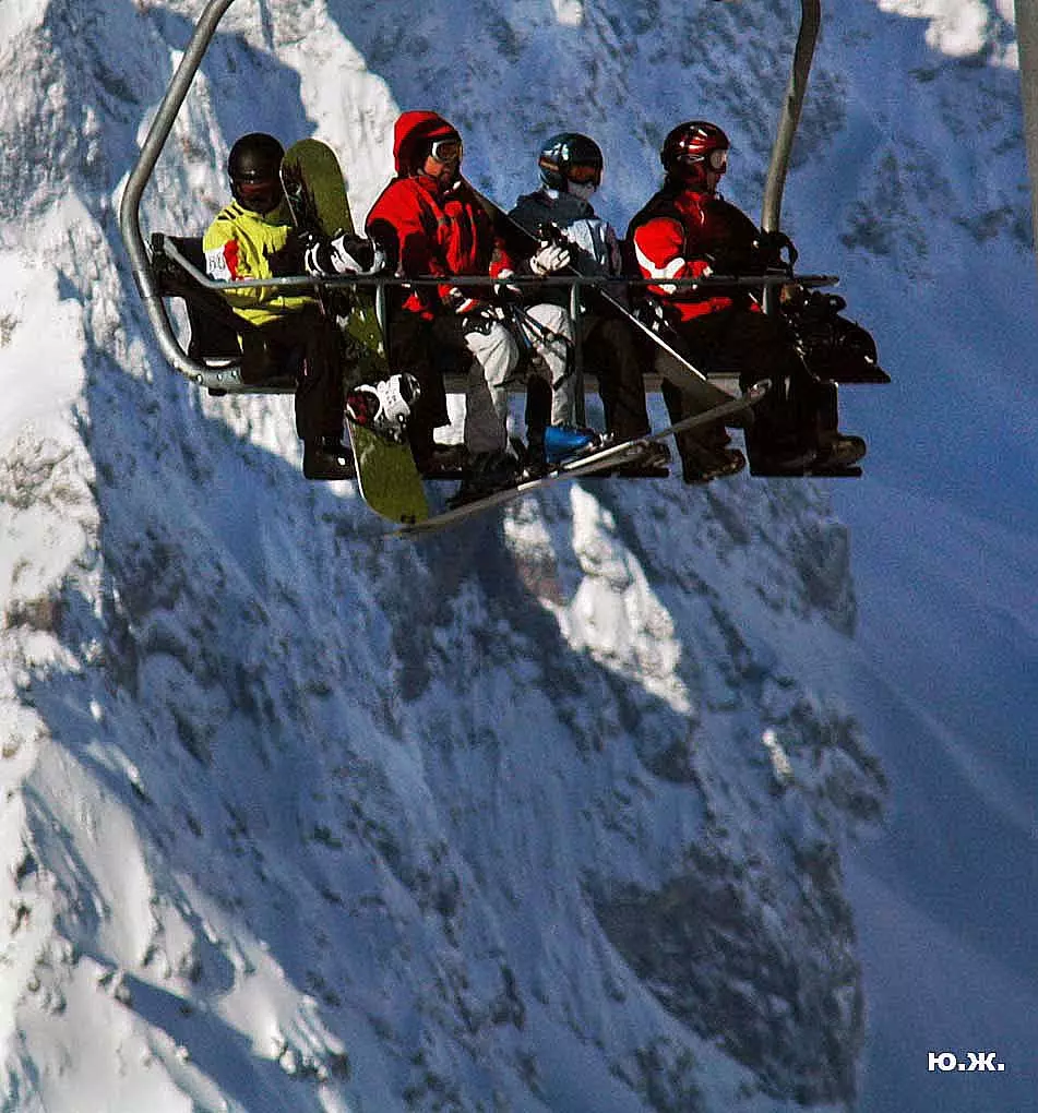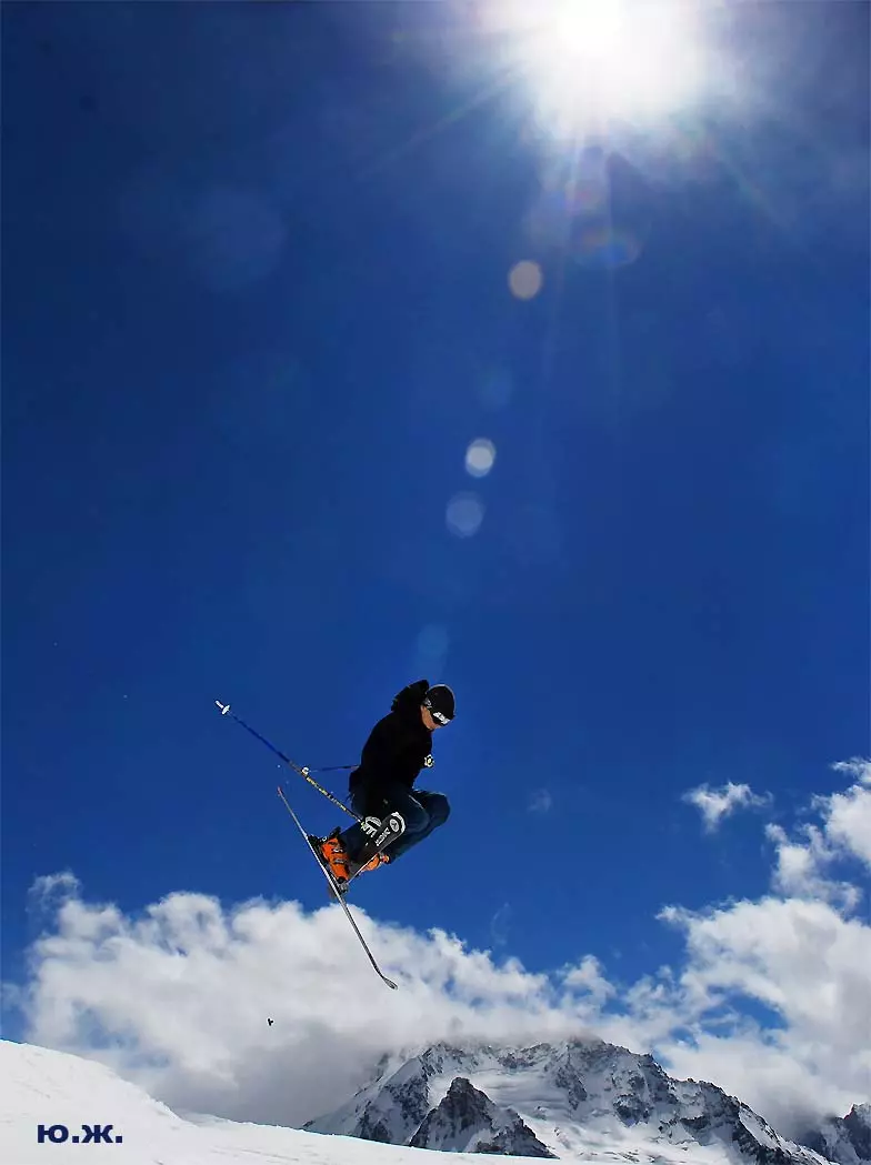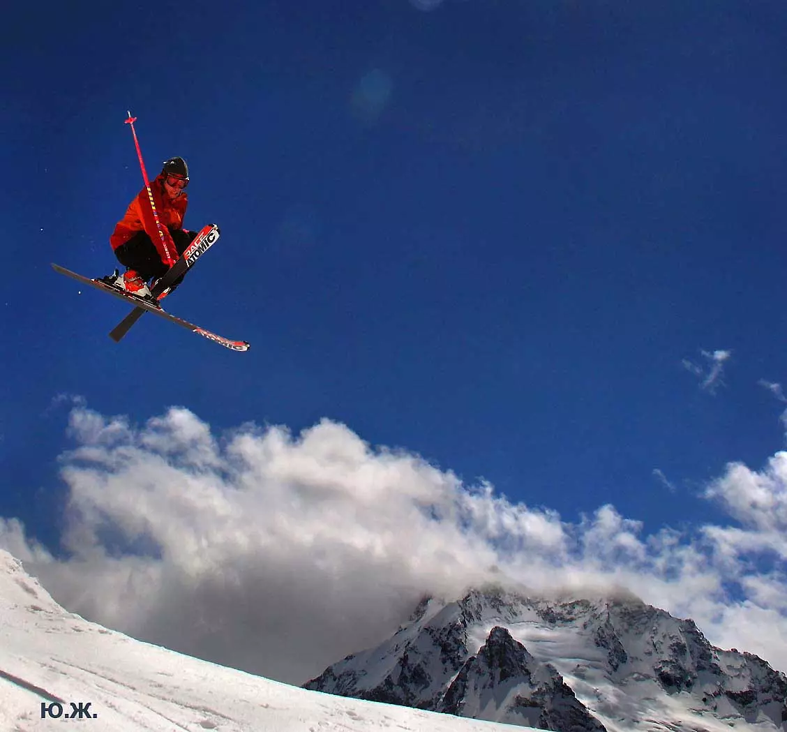 А еще в горнолыжный сезон, как и сейчас, вершины гор и их спуски обживают тысячи сильных, храбрых, красивых и влюбленных в горы людей. Они выделывают на своих сноубордах и лыжах такие непостижимые уму высоченные прыжки, кульбиты, перевороты, что кажется, в темно-синем небе парят крылатые люди-небожители.