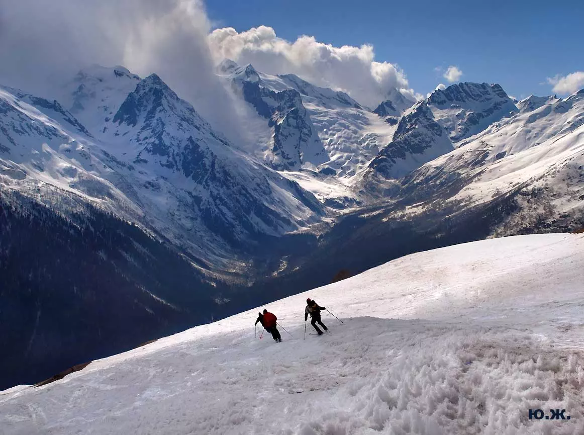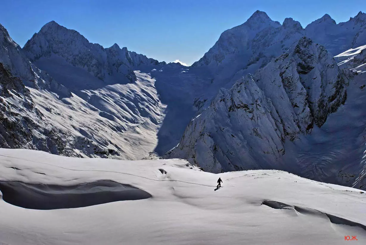 Многие любят красивые пейзажи, любуются ими, фотографируют их. А из пейзажей часто выбирают горы: высокие горы, настолько высокие, что они касаются неба, встречаются с ним. Пронизывают его облака своими острыми вершинами — как, например, Пик Инэ, Зуб Софруджу, Домбай Ельген и другие, рассекают их — наверное, чтобы посмотреть какое над облаками чистое небо. А еще красивее, когда зимой все покрыто мощным покровом снега: и горы, и долины, и ущелья…