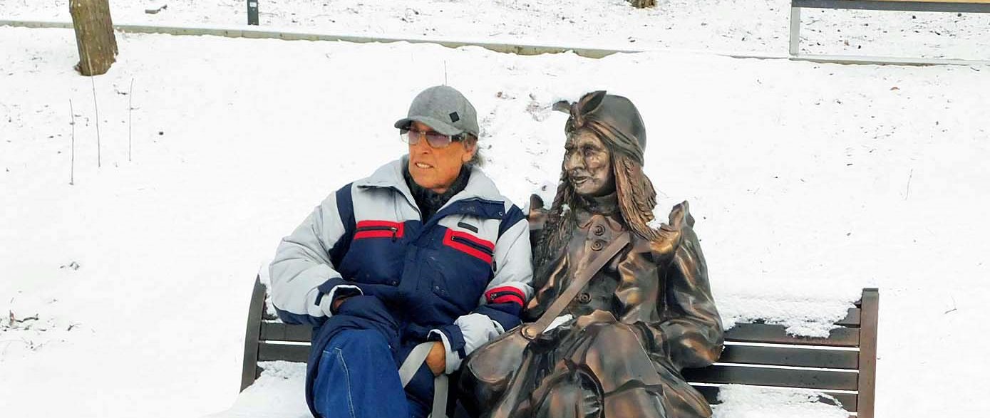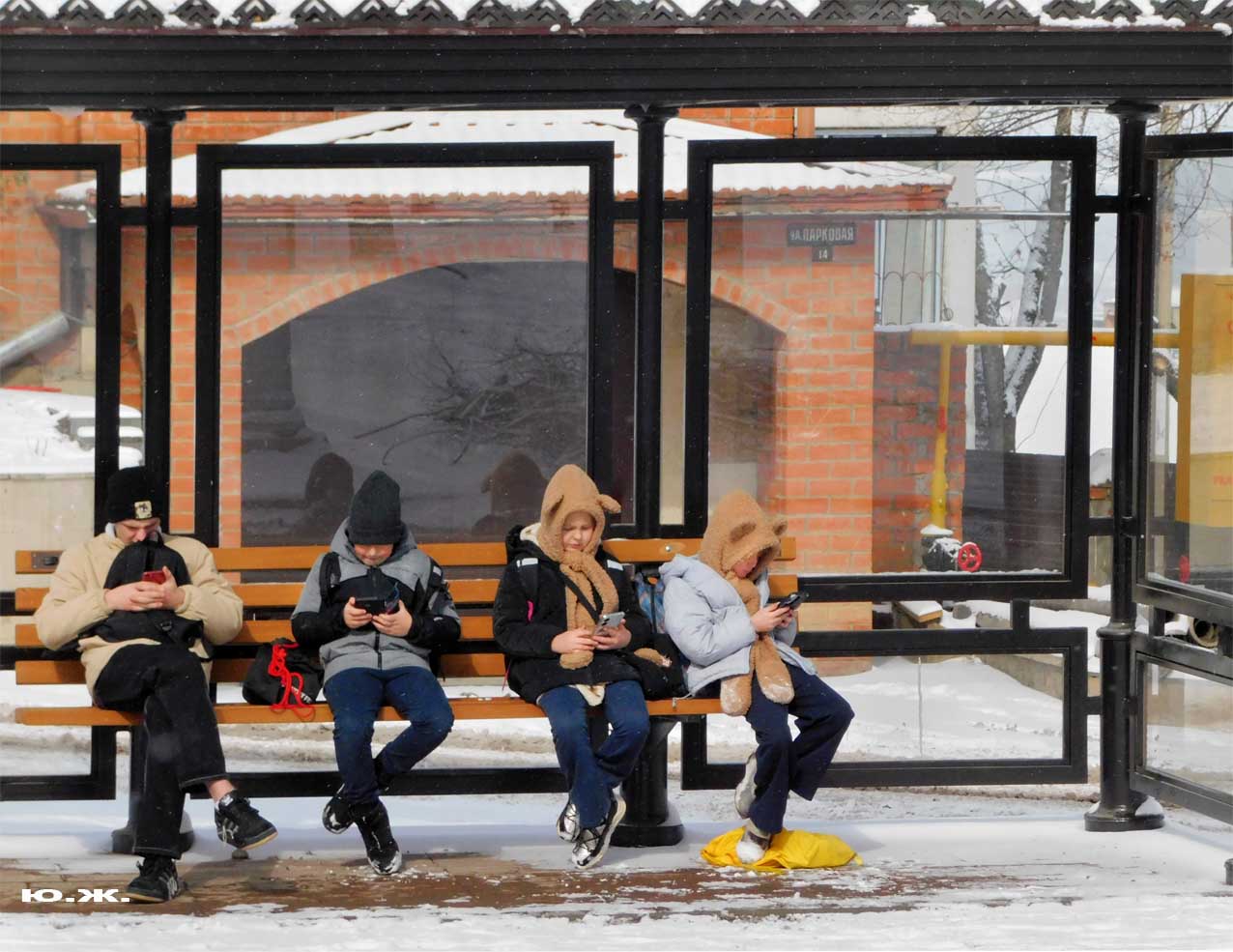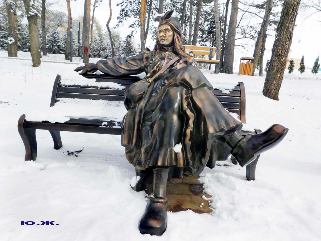 Понравилась интересная остановка автобуса с очень деловыми лицами старшеклассников, ожидающих свою маршрутку. Мне лично запомнилась сидящая на небольшой возвышенности на скамье эффектная бронзовая дама, ставшая уже достопримечательностью. Она здесь лучшая.