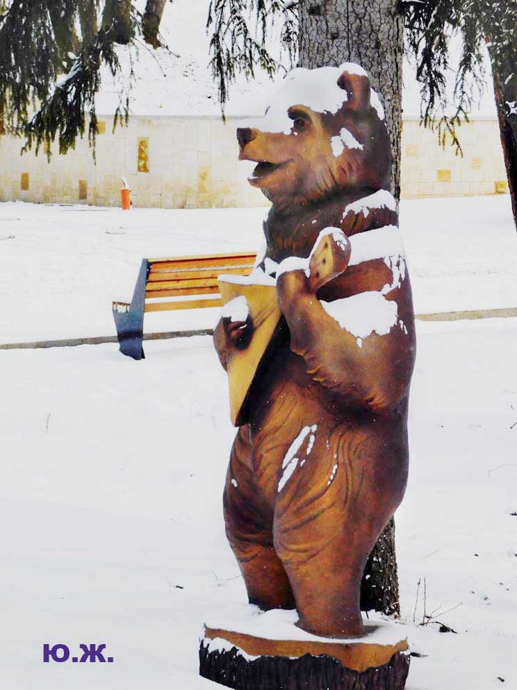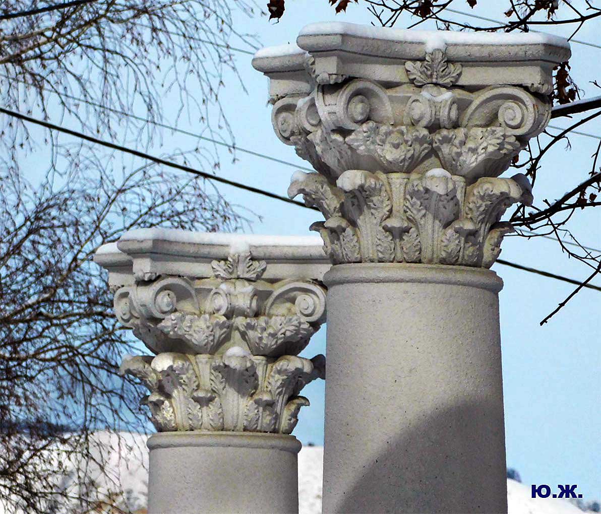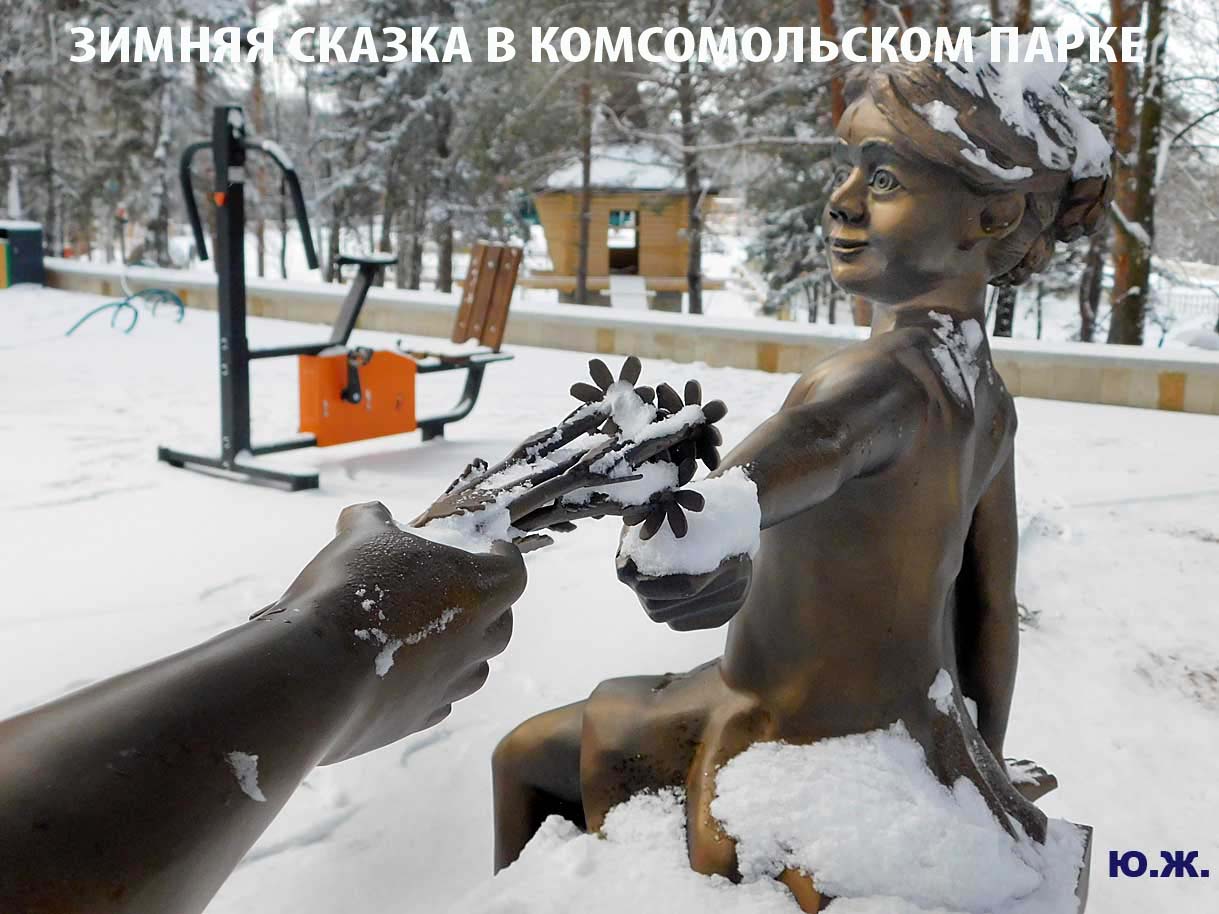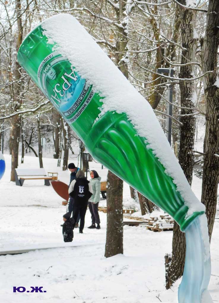 В Кисловодске такое встречается очень редко. Морозы в минус двадцать один градус случаются не каждый год. Суть этого снега в том, что он покрыл белоснежным покрывалом все пространство Парка, все входящие в него строения стали одним ансамблем: аттракционы, парковые скульптуры, высоченные хвойные деревья, с которых свисают очень красивые оригинальные елочные игрушки и которые уже дождались весны, здесь они с декабря месяца. (см. санатории: Москва, Долина Нарзана, Узбекистан…). А античные колонны со всех сторон входа и выхода в Парк? Взгляните, как смотрится сквозь них белый, как и наш снег, высотный дом на Цандера или совсем рядом стоящие освещенные заходящим солнцем, красивые оранжевые высотки, рядом с резными колоннами…