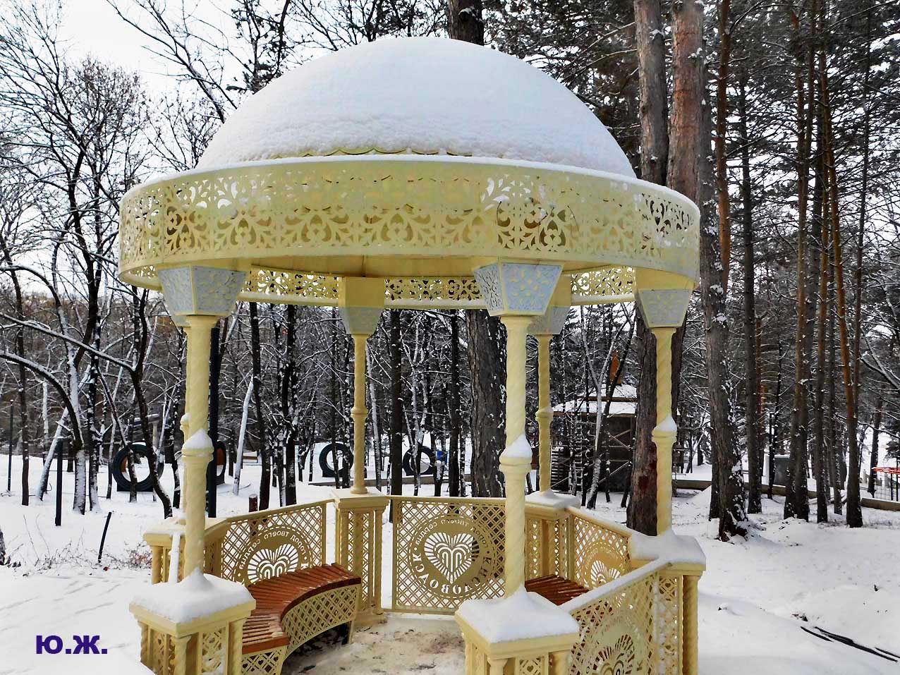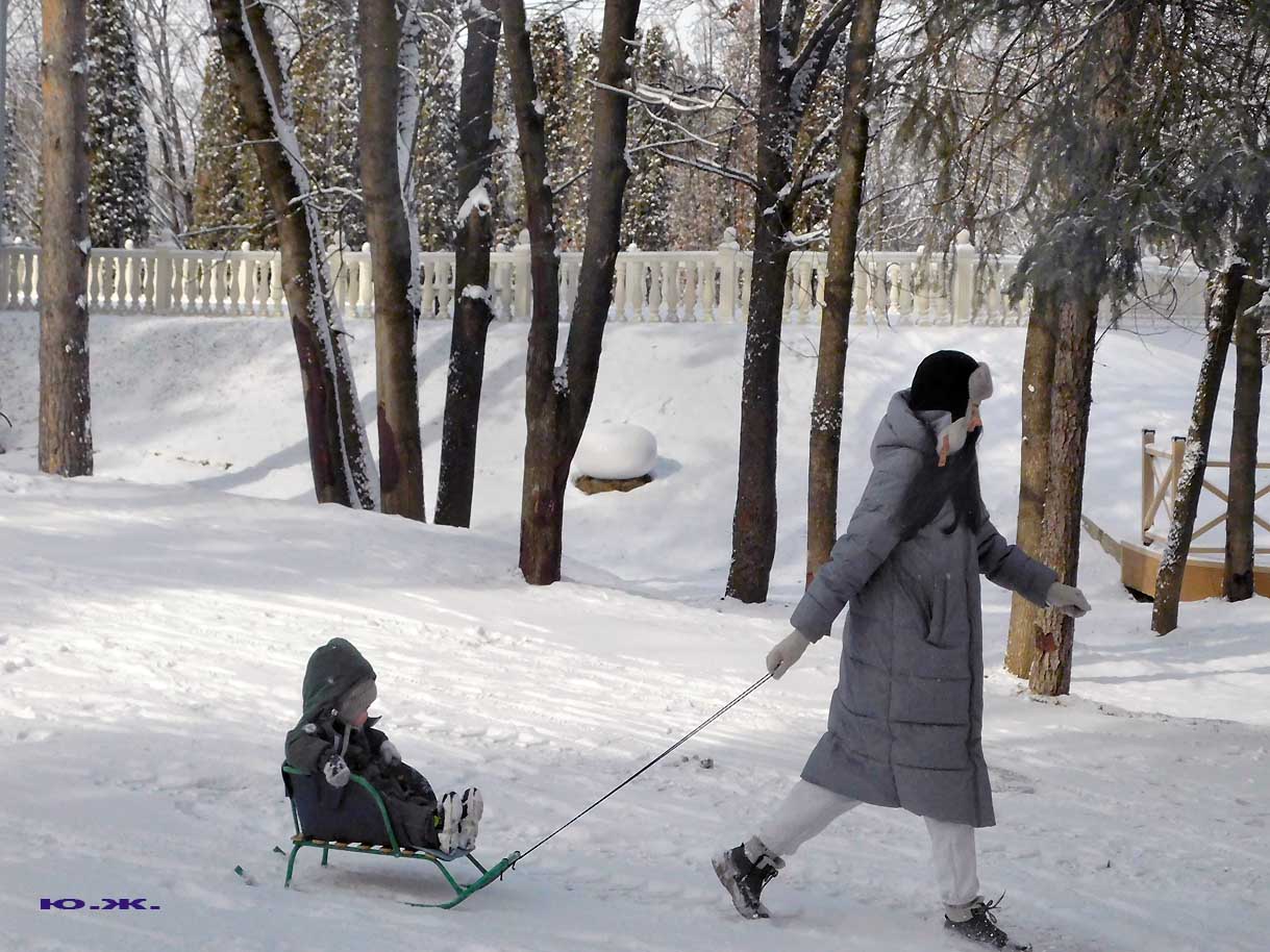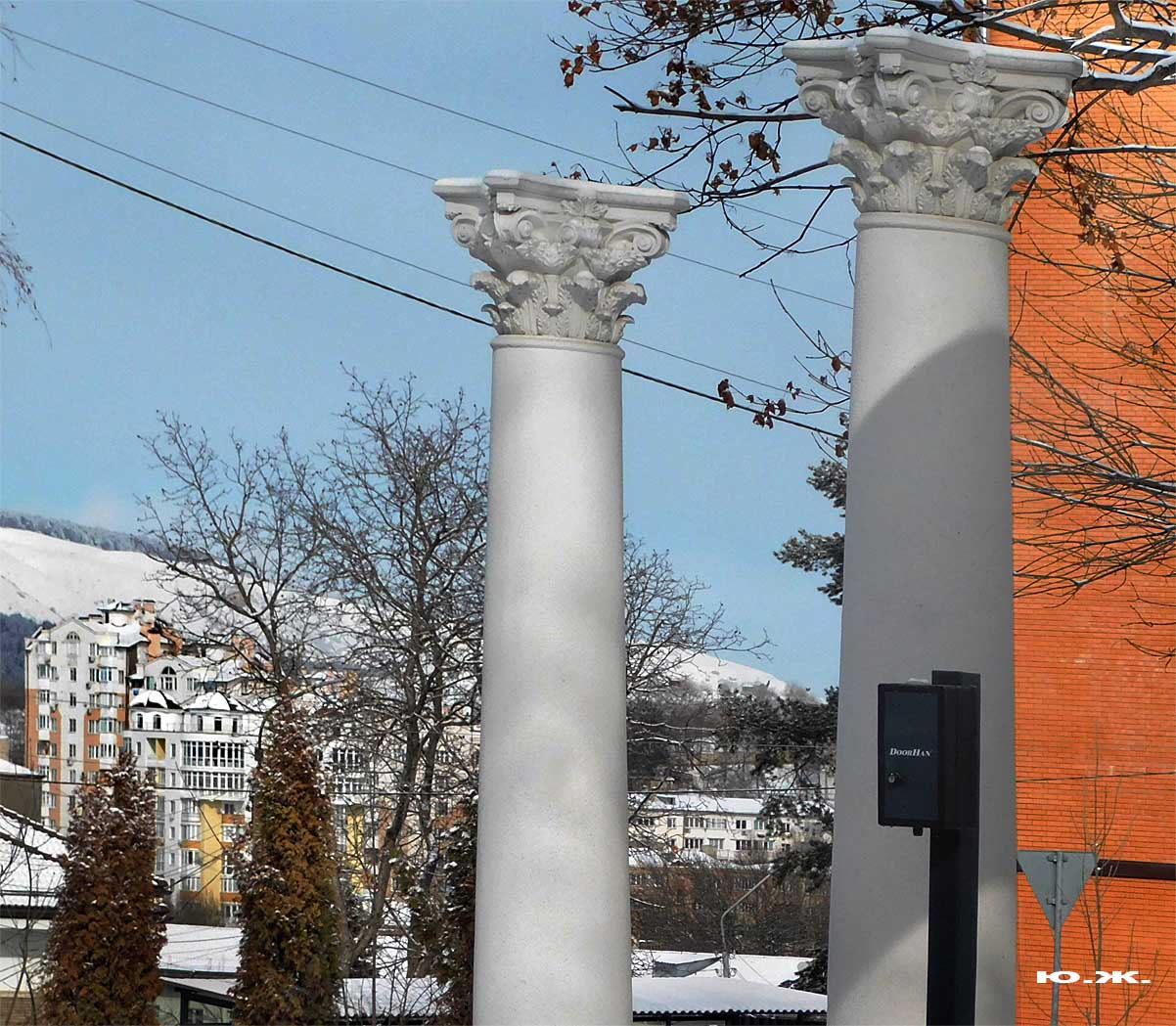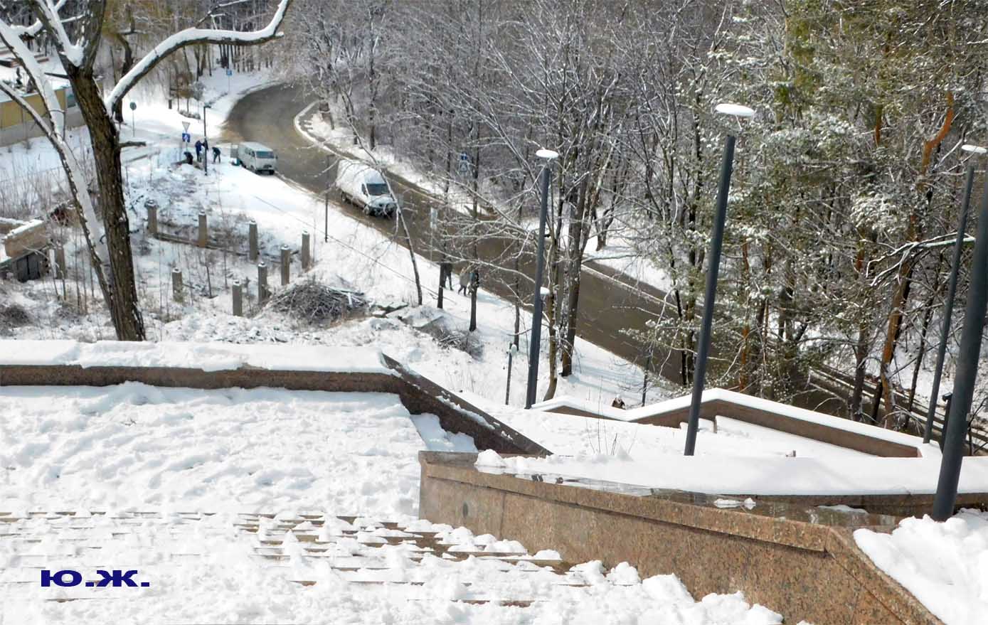 В Кисловодске такое встречается очень редко. Морозы в минус двадцать один градус случаются не каждый год. Суть этого снега в том, что он покрыл белоснежным покрывалом все пространство Парка, все входящие в него строения стали одним ансамблем: аттракционы, парковые скульптуры, высоченные хвойные деревья, с которых свисают очень красивые оригинальные елочные игрушки и которые уже дождались весны, здесь они с декабря месяца. (см. санатории: Москва, Долина Нарзана, Узбекистан…). А античные колонны со всех сторон входа и выхода в Парк? Взгляните, как смотрится сквозь них белый, как и наш снег, высотный дом на Цандера или совсем рядом стоящие освещенные заходящим солнцем, красивые оранжевые высотки, рядом с резными колоннами…